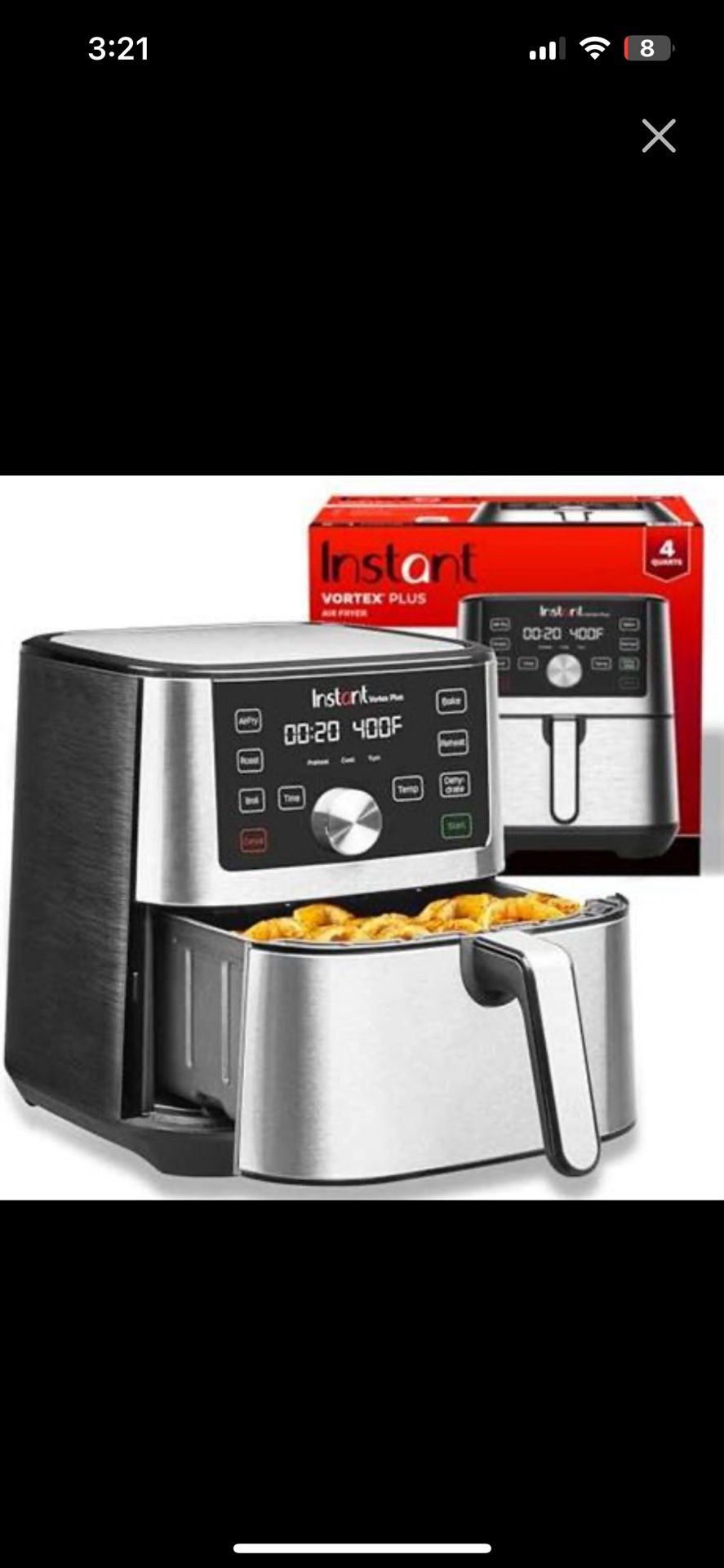 Instant Pot Vortex Plus 4QT Air Fryer, Custom Program Options, 6-in-1 Functions Crisps, Broils, Roasts, Dehydrates, Bakes, Reheats, 100+ In-App Recipe