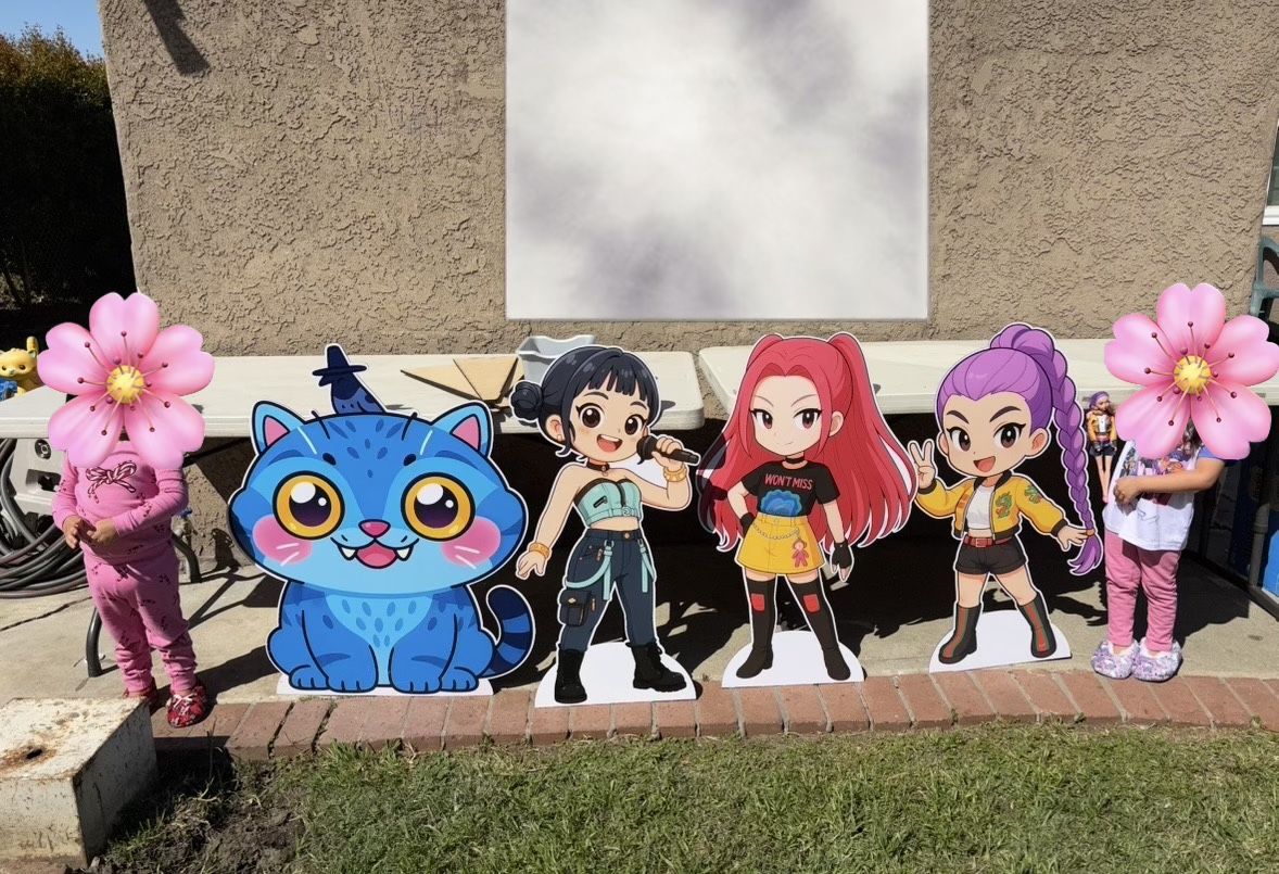 Demon Hunters “HUNTR/X” Party Figure Stands 1.) Rumí ($40) 2.) Mira ($40) 3.) Zoey ($40) 4.) Derpy Tiger ($40) (Or $130 for ALL) (Size: each 3 feet tall) (Total Pieces: 4) OfferUp: $40 each OR $130 for all!