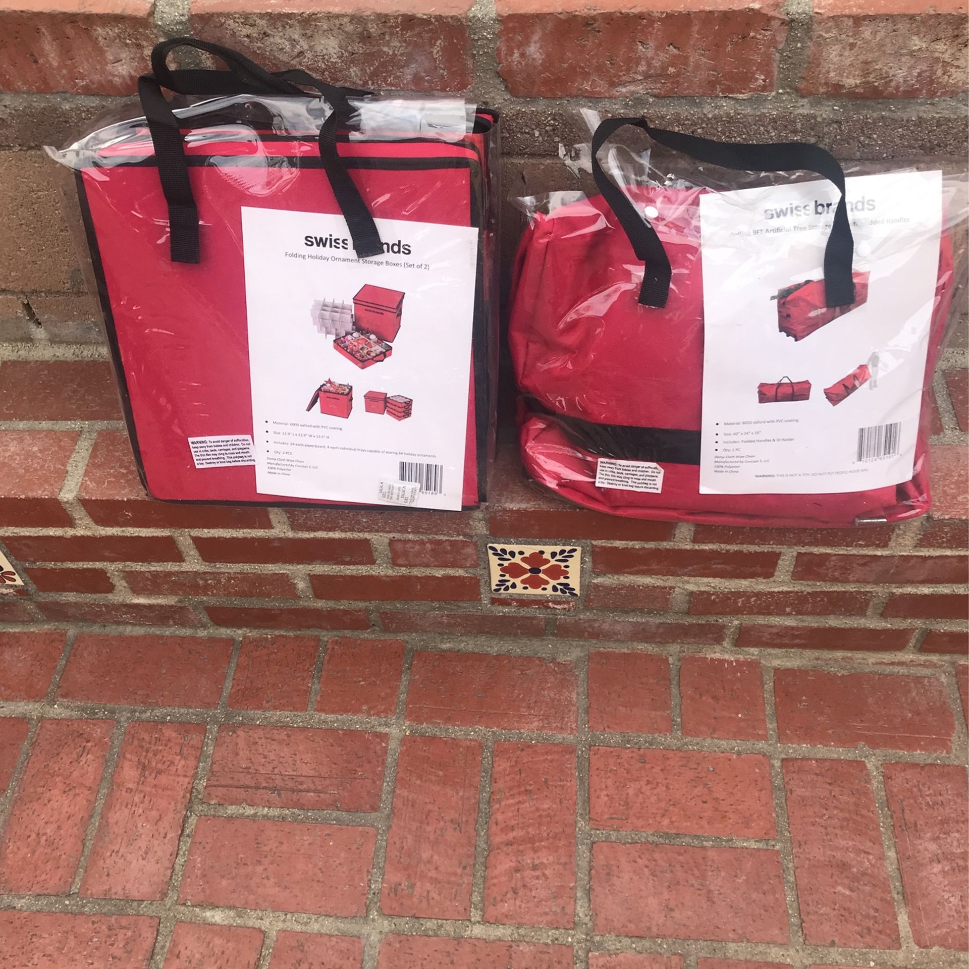 Folding Holiday Ornament Stirage Bixes Set Of 2 + Rolling 9ft Artificial Tre Storage Bag Whit Padded Handles New $50