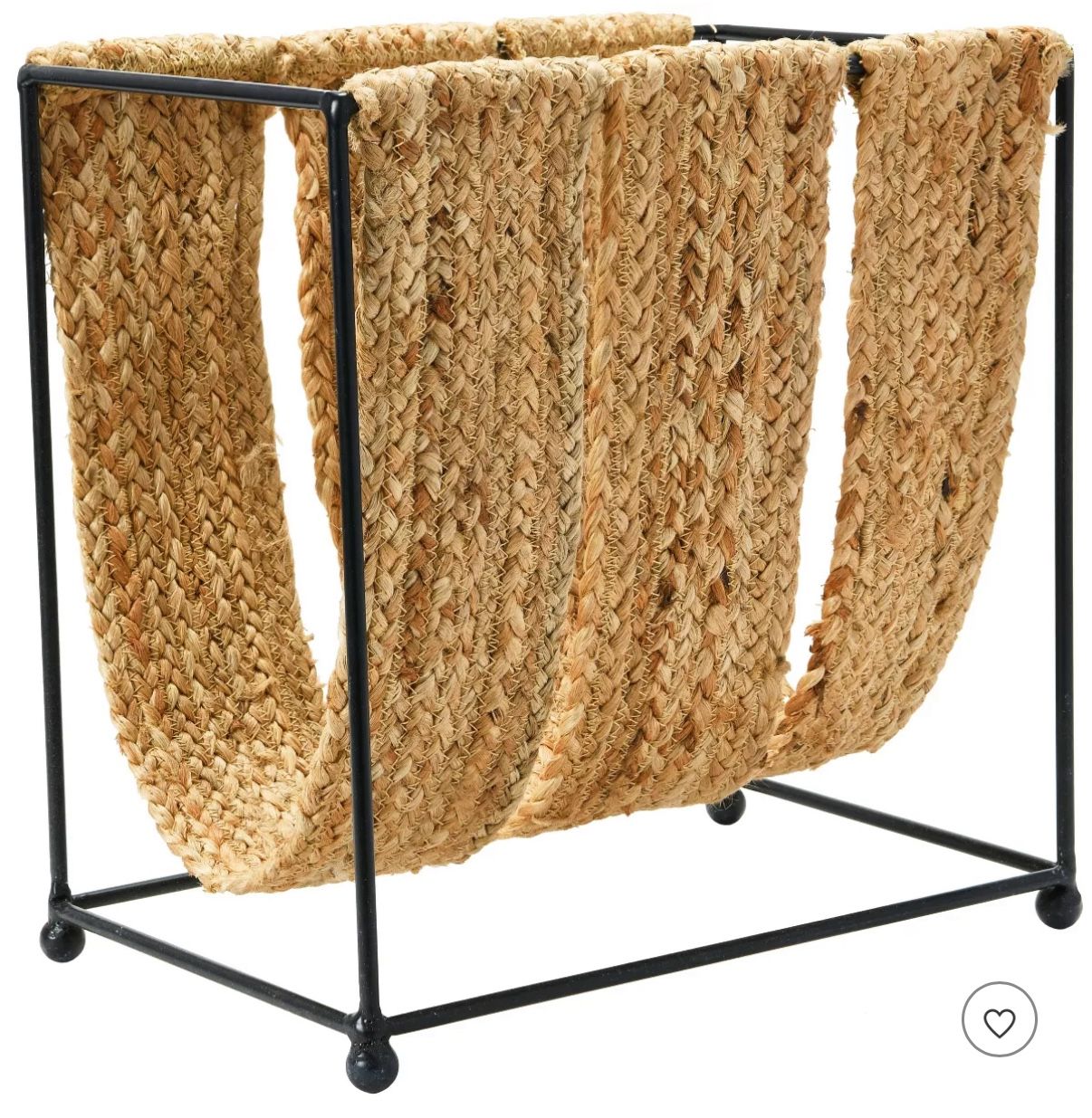 Woven Jute and Metal Magazine Holder, Natural and Black