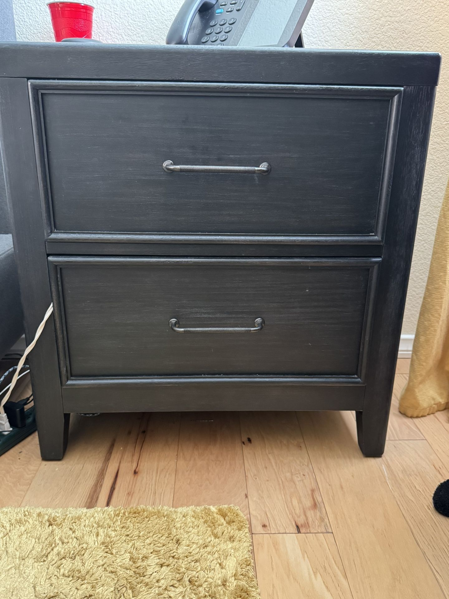 Selling a sturdy and stylish 3-piece bedroom furniture set in good used condition. All pieces are solid, clean, and offer great storage with smooth-glide drawers. Includes: • 5-Drawer Dresser – deep drawers, modern metal handles • Two 2-Drawer Nightstands – spacious storage, matching finish Color: Black wood finish Condition: Light normal wear, no major damage, smoke-free home. Perfect for a primary bedroom, guest room, or teen room. Already priced to sell. Pickup only • Cash or Venmo • Price firm