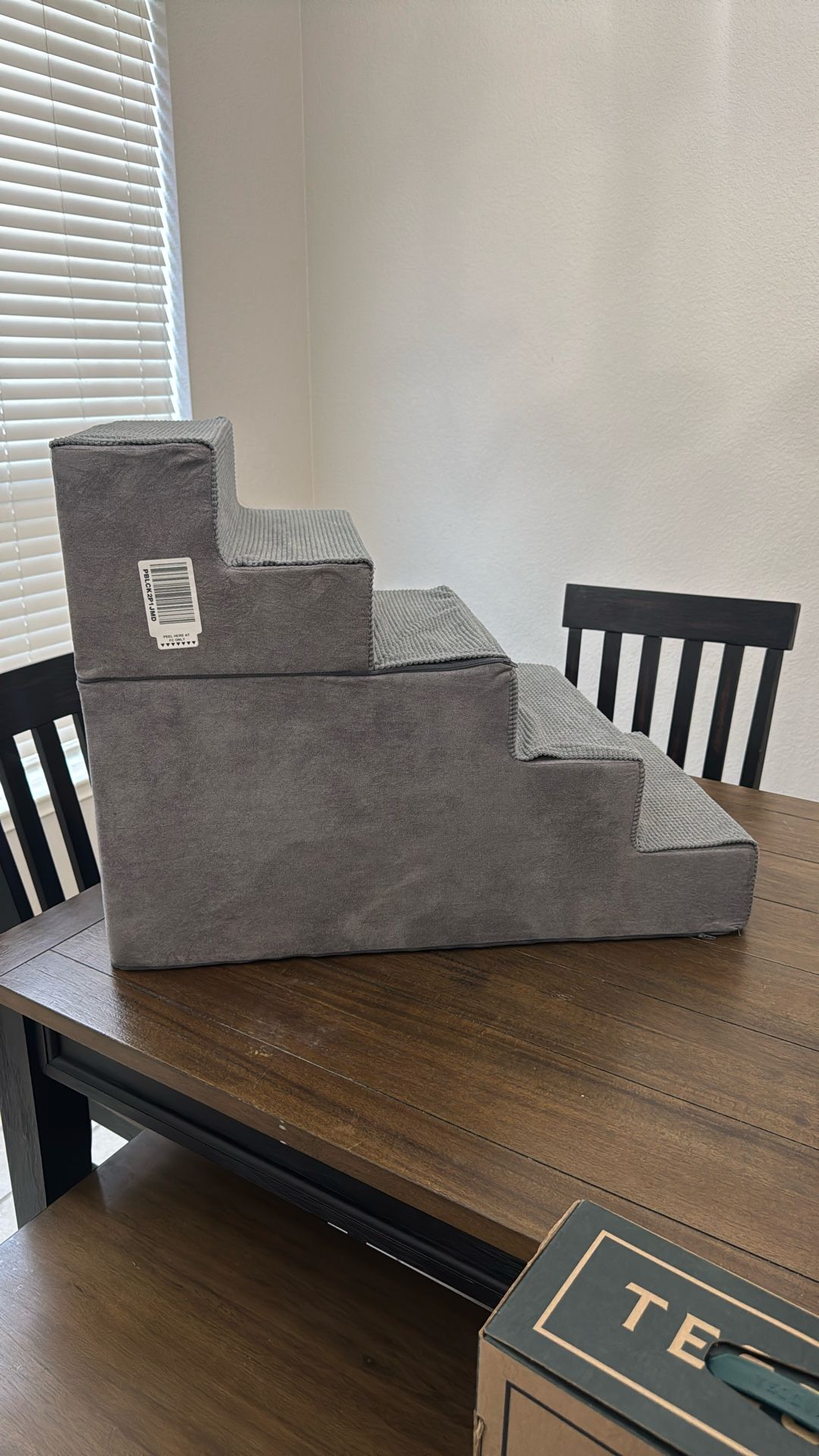 Bought and never used, not sturdy enough for my 60lbs dog. Would better suit a small to medium sized dog! Rubber pads on bottom to keep it in place on wood / tile