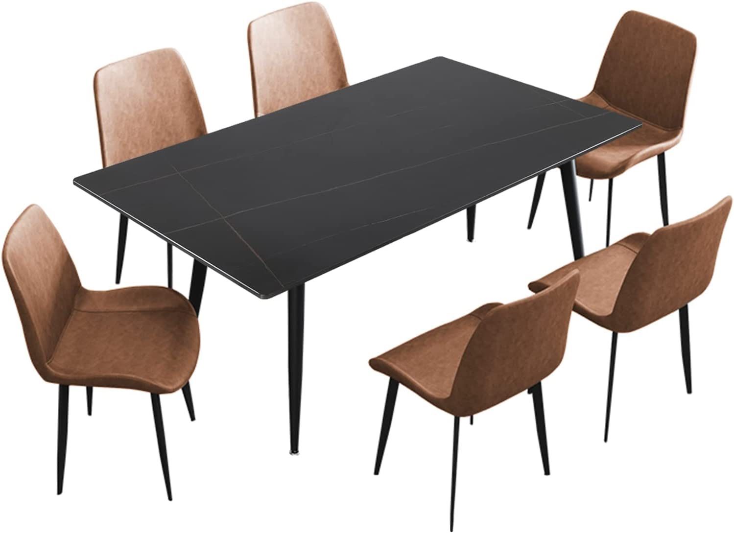 Dining Table Set Kitchen Dining Table Modern Slate Stone Dining Table Kitchen Small Space Dining Table and 4 Leather Chairs (Table +4 Brown Chairs)