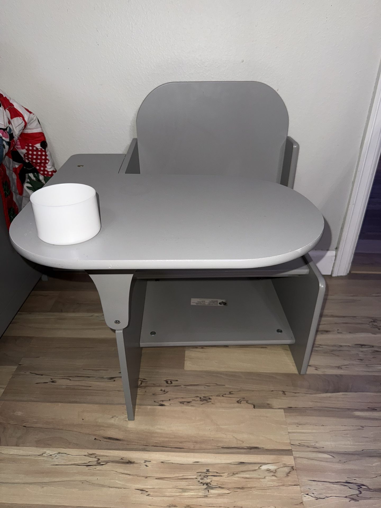 Delta children desk, my little one outgrew so no longer need. There is a juice ring on the top of the desk as well as some wear (pictured) but the table is still useable