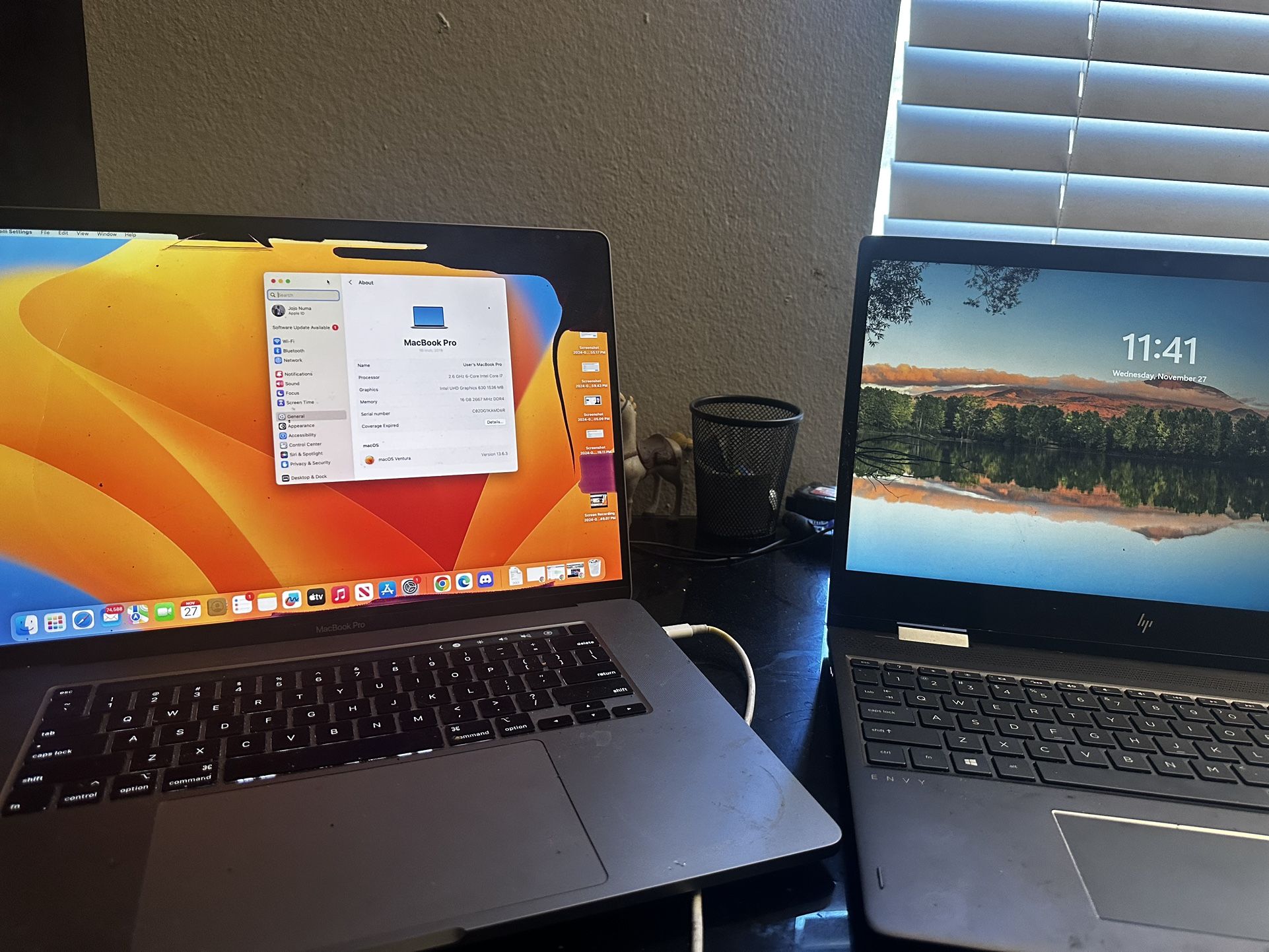 16 Inch MacBook Pro + HP Envy Touch Screen Laptop