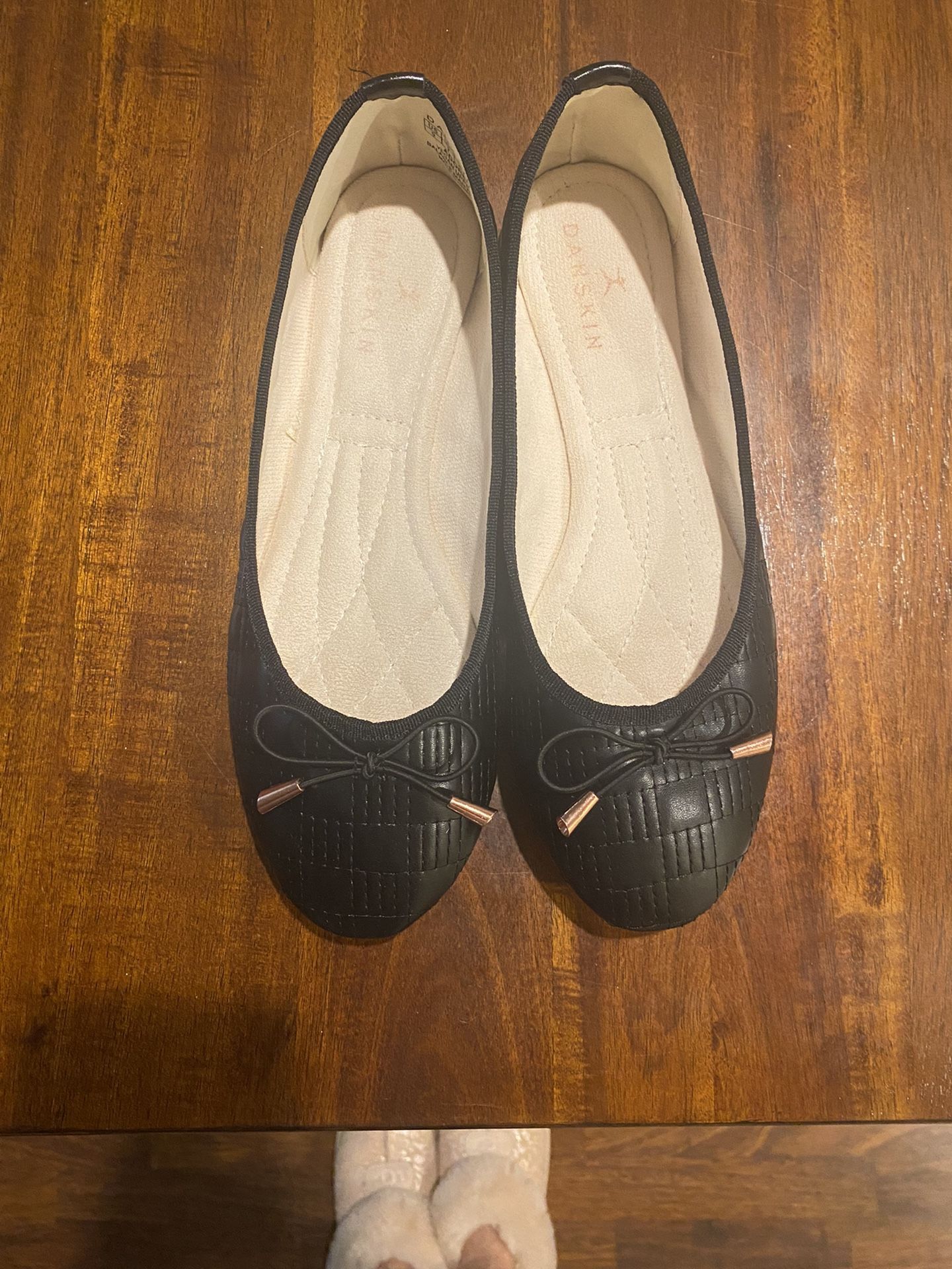 Danskin Woman’s Black flats with bow size 9 Has non-slip rubber tabs on bottom of shoe new Never worn No returns local purchase cash only