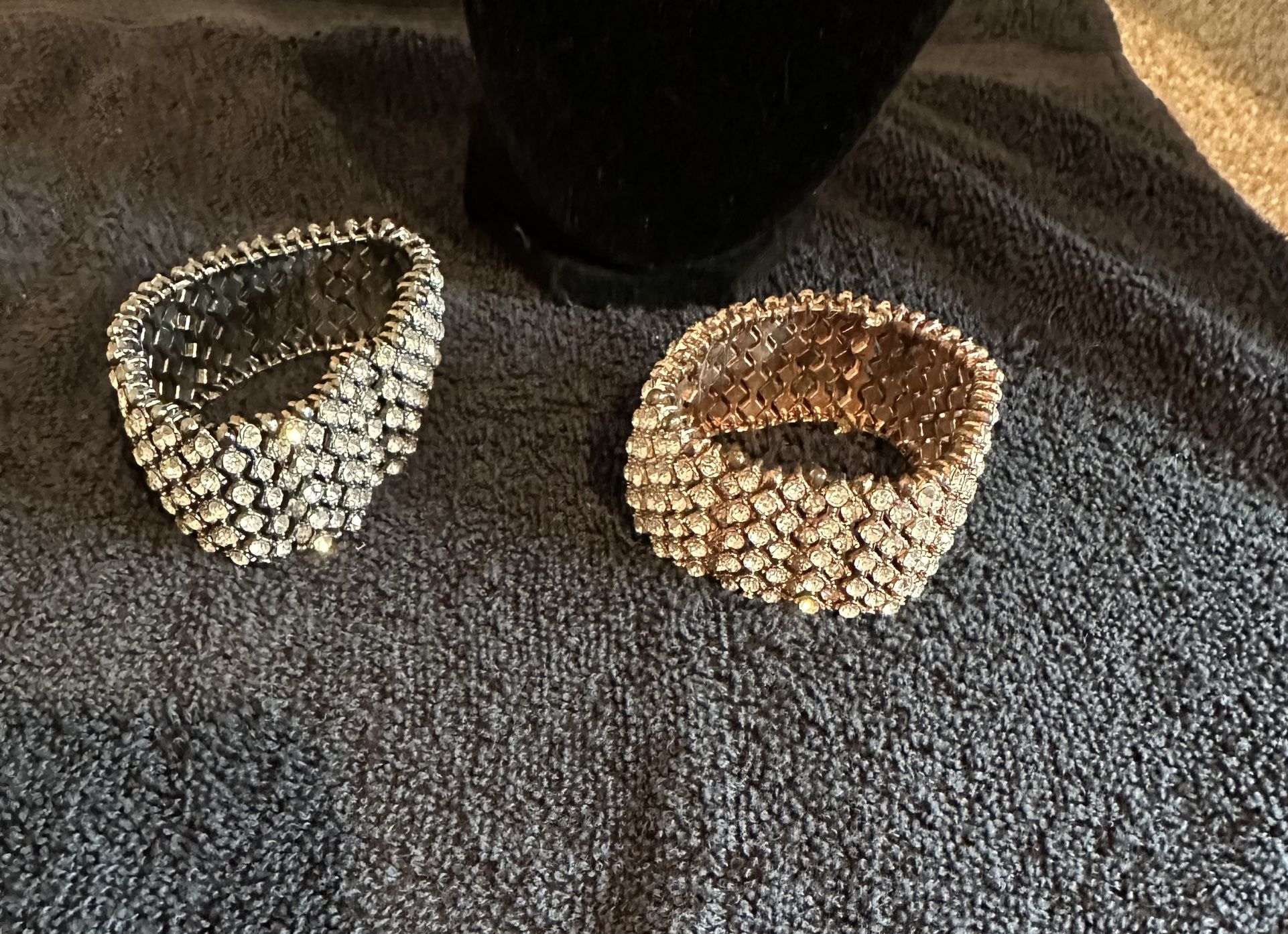 Set Of 2 Stretch Rhinestone Bracelets - Gold & Silver