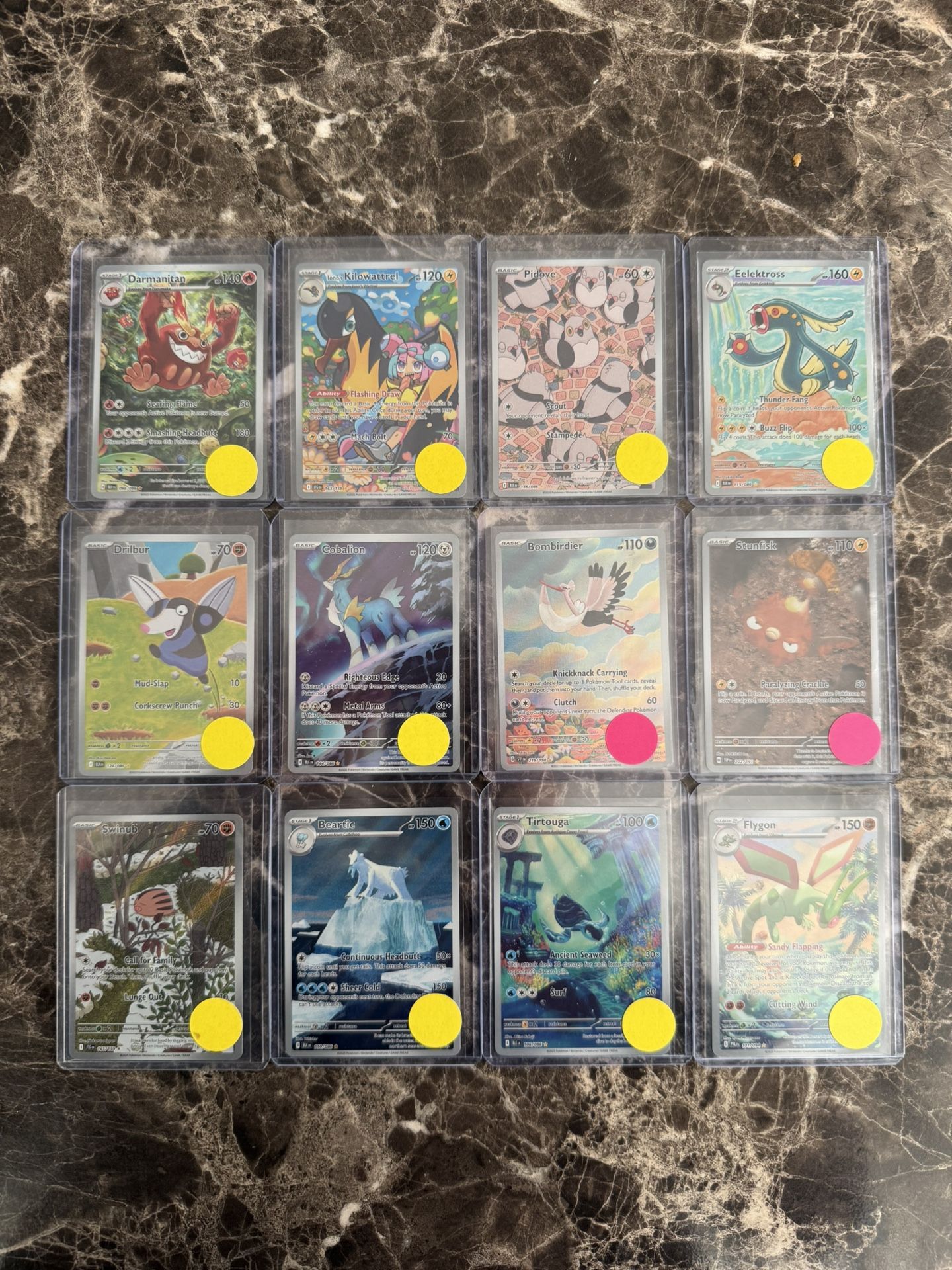 Darmanitan - IR (098/086) Drilbur - IR (124/086) Swinub - IR (165/159) Iono’s Kilowattrel - IR (163/159) Cobalion - IR (144/086) Beartic - IR (110/086) Pidove - IR (148/086) - 🚨SOLD🚨 Bombirdier - IR (219/198) Tirtouga - IR (106/086) Eelektross - IR (115/086) Stunfisk - IR (202/191) Flygon - IR (101/094) All cards are in near mint conditions. Not taking trades or sales at a %. Current prices based on TCG/Collectr