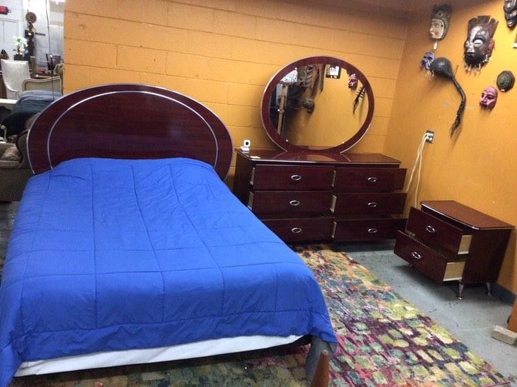 Queen Size Burgundy Bedroom Set For Sale ποΈ - 6 Drawer dresser 65" w, 16" d, 33.5" h - Oval shaped mirror to attach πͺ 49" x 36.5" - Single 2 drawer night stand 26" w, 16.5" d, 24" h - Queen mattress and box spring set - Queen / full headboard and metal frame - Condition is great. 9 out of 10 - Dresser and night stand has silver legs and pulls - Measurements: π In current configuration 105" w, 102" d, 28" h Located at St Louis Consignment Gallery 3217 Woodson Rd St Louis MO 63114 π£ Open Sunday, Monday, and Wednesday 12-5 Open Friday 12-6 Open Saturday 9-6 Pick up this entire bedroom set for $700 Add $150 for local drop-off π Many other furniture selections are available. Furnish your entire home with beautiful pieces and decor π± Follow @StLouisCG #stlouisconsignmentgallery #stlouiscg