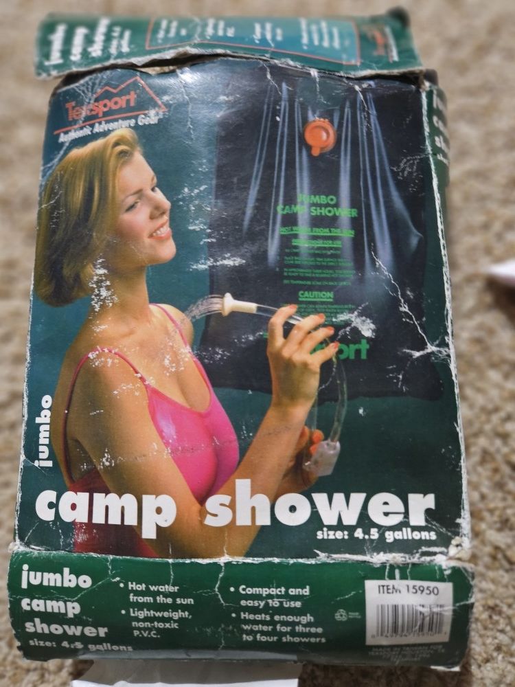 Coleman hanging camp shower. Origanal well used box but item was never used.