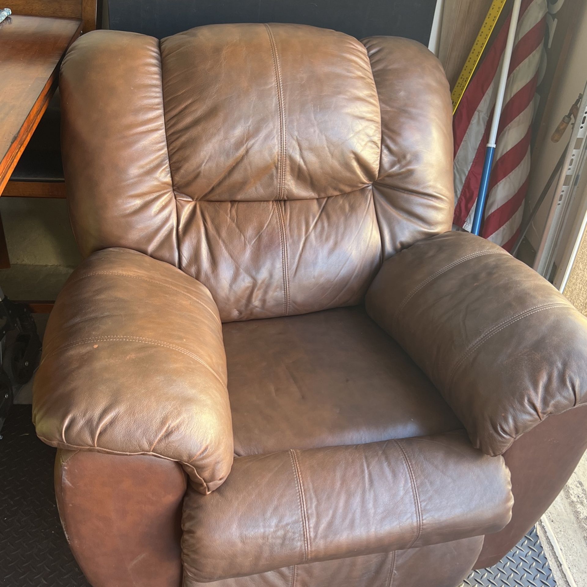 Used recliner. Was in our garage. But I’m good condition. Recliner handle works.