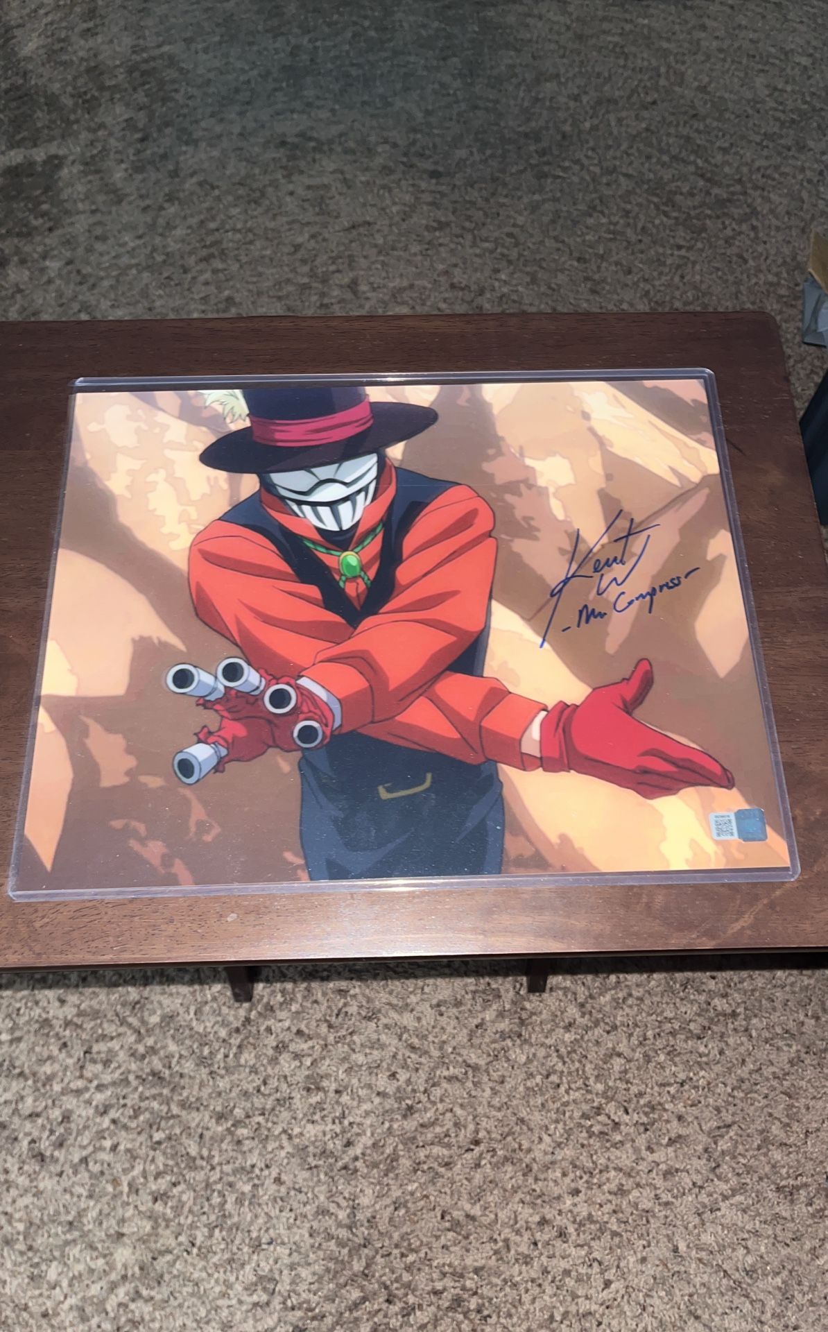 Mr. Compress from my hero academia autograph by the voice actor Kent Williams