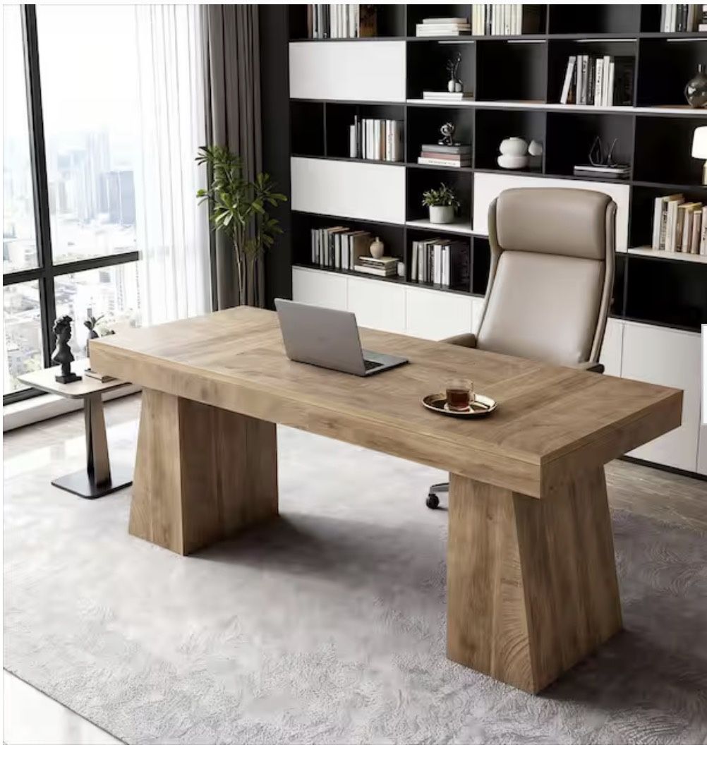 55.1 in. Brown Rectangle Wood Executive Desk, Large Modern Farmhouse Computer Desk for Home Office - Brand New