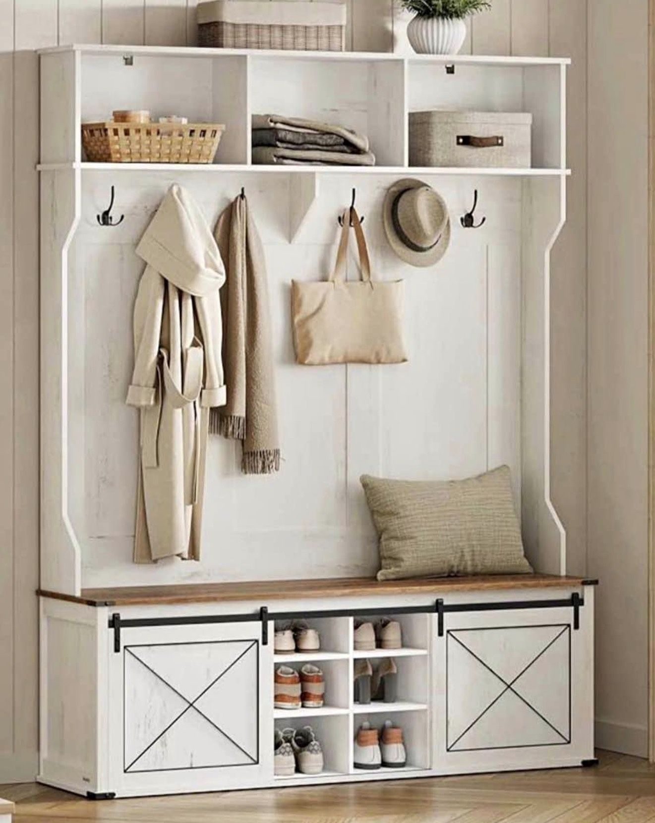 Hall Tree with Bench and Shoe Storage, Coat Rack with Shoe Bench, Entryway Furniture,