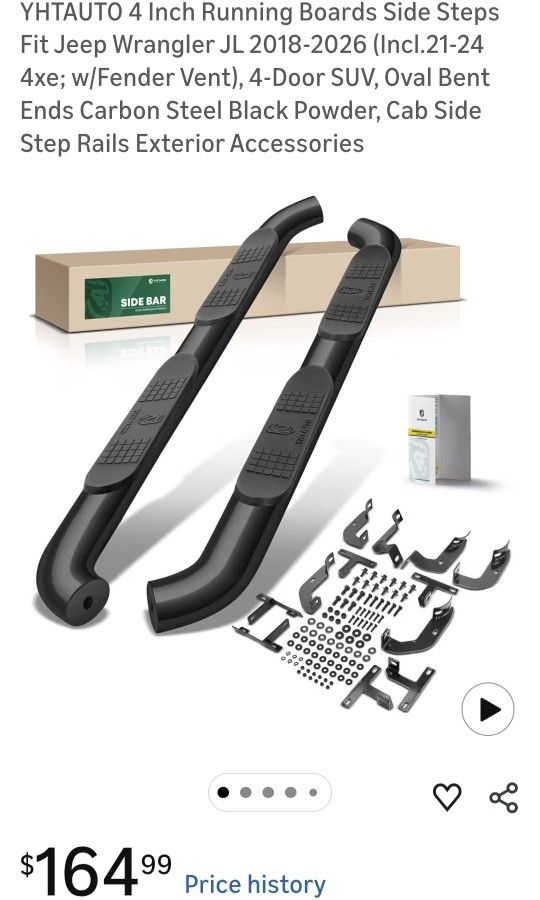 YHTAUTO 4 Inch Running Boards Side Steps Fit Jeep Wrangler JL 2018-2026 (Incl.21-24 4xe; w/Fender Vent), 4-Door SUV, Oval Bent Ends Carbon Steel Black Powder, Cab Side Step Rails Never installed Brand new in the box with paint dings from shipping on the bottom of board Estribos nuevos para Jeep Wrangler Located in Peoria