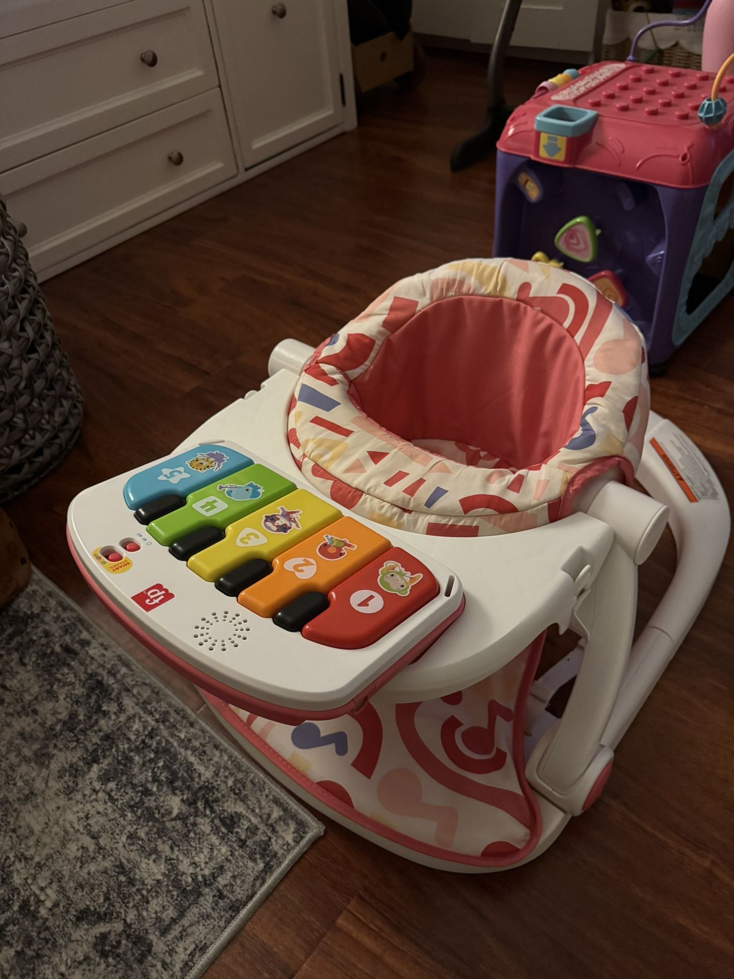 Fisher-Price Portable Baby Chair, Pink Kick & Play Deluxe Sit-Me-Up Seat with Piano Learning Toy & Snack Tray for Infants to Toddlers Laugh & Learn® Smart Stages™ Chair VTech Ultimate Alphabet Activity Cube, Activity Toy for Infants, Pink