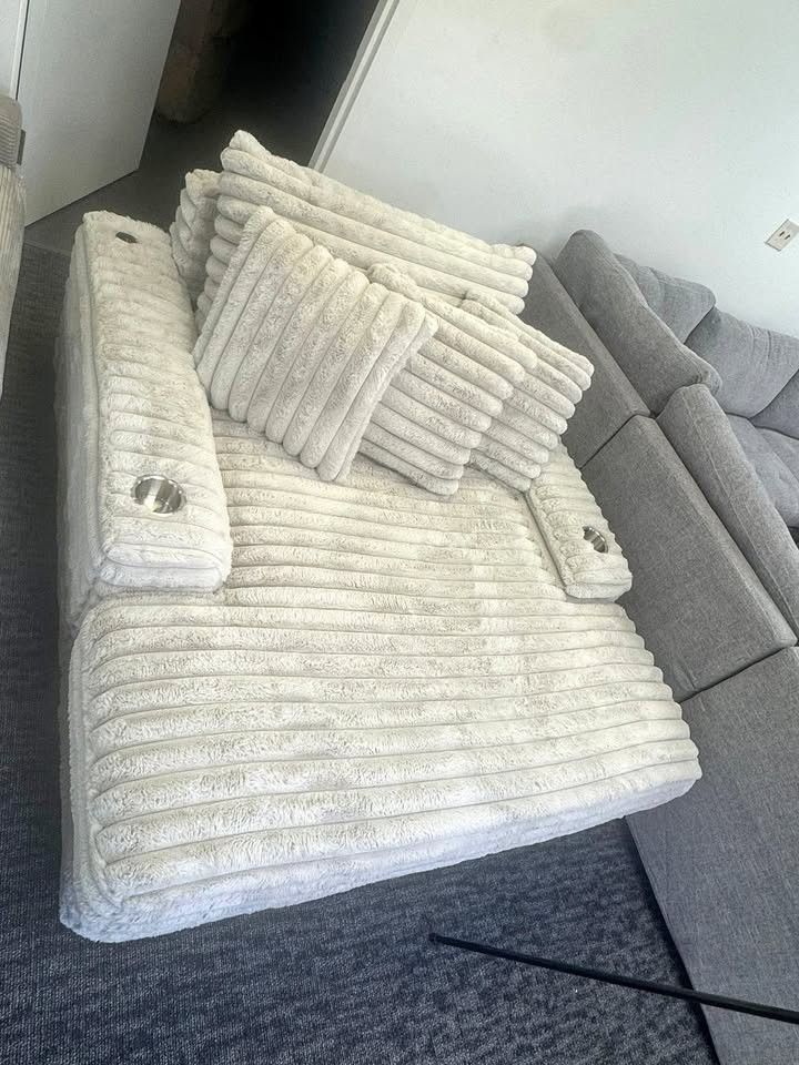 Brand New Lounge Ribbed Chair With USB Port and Cup Holders. Also Available in Black