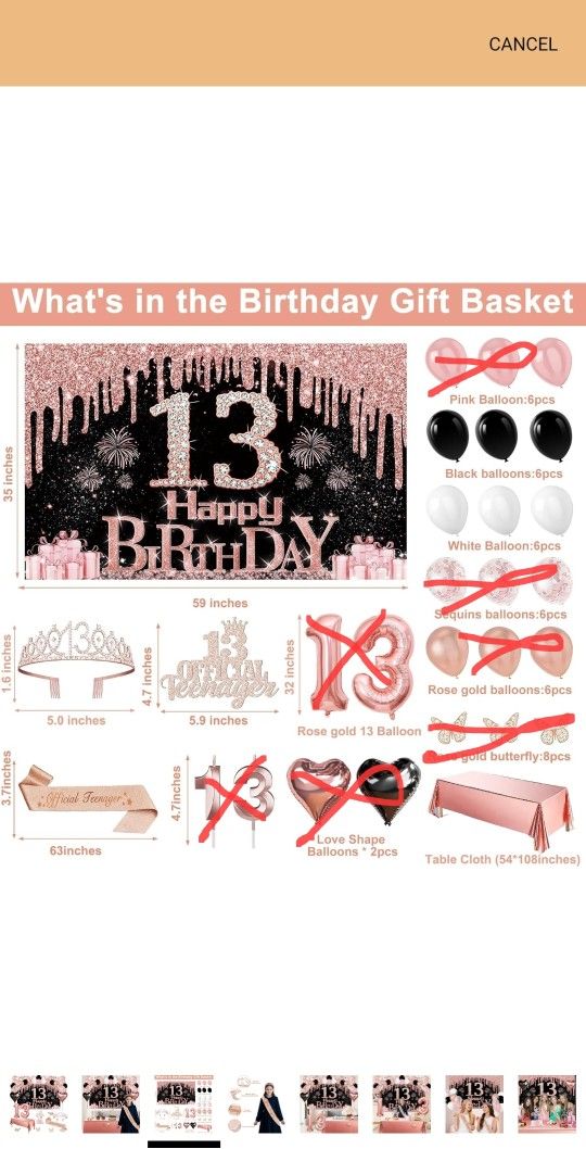 13th Birthday Decorations for , Black Rose Gold Black Banner, Tablecloth, 13th Birthday Sash and Tiara it doesn't have the cake topper some balloons and banners and table cover and tiara 10obo