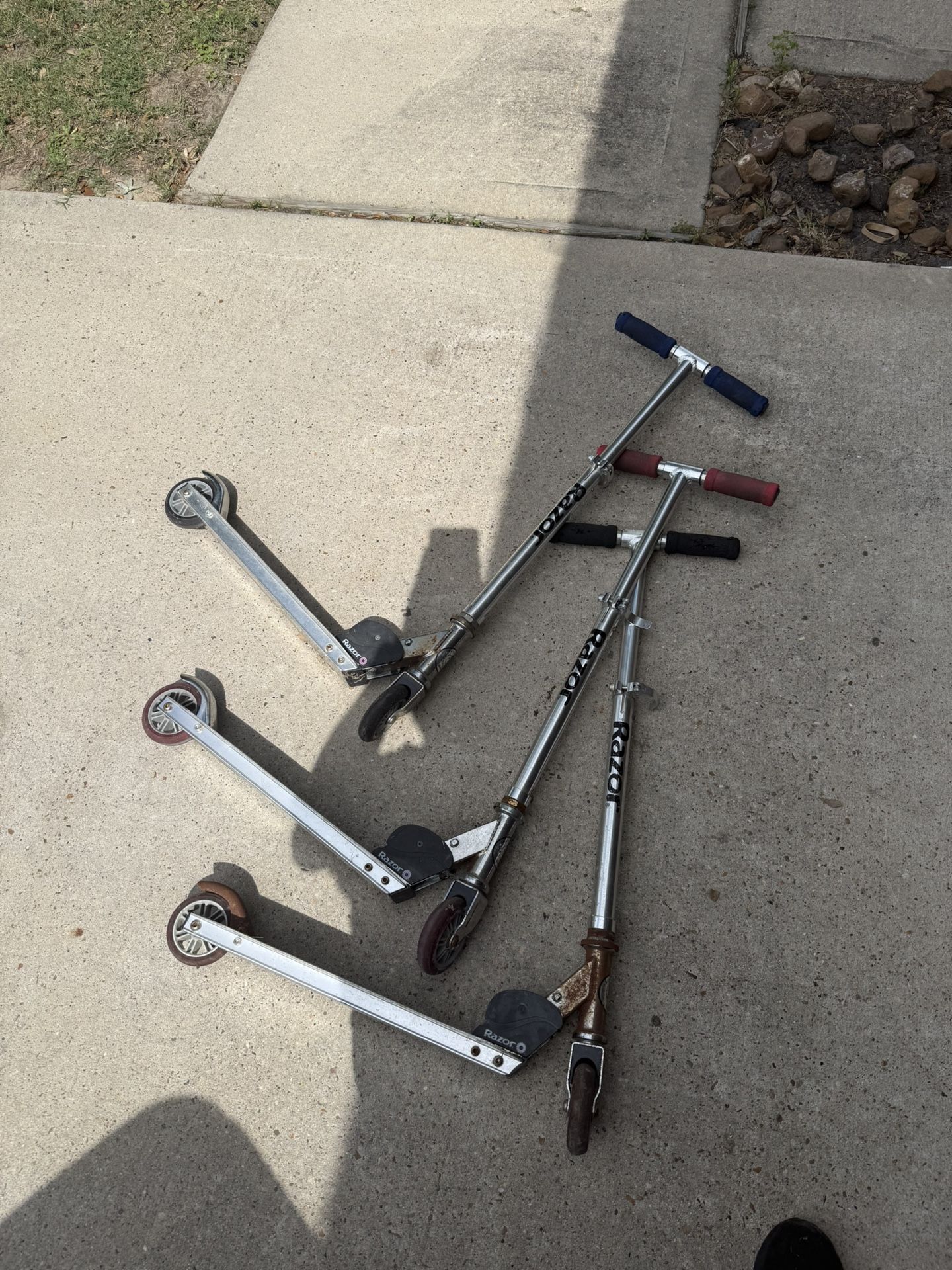 3 used Razors scooter come pick them up $5 bucks for all of them.