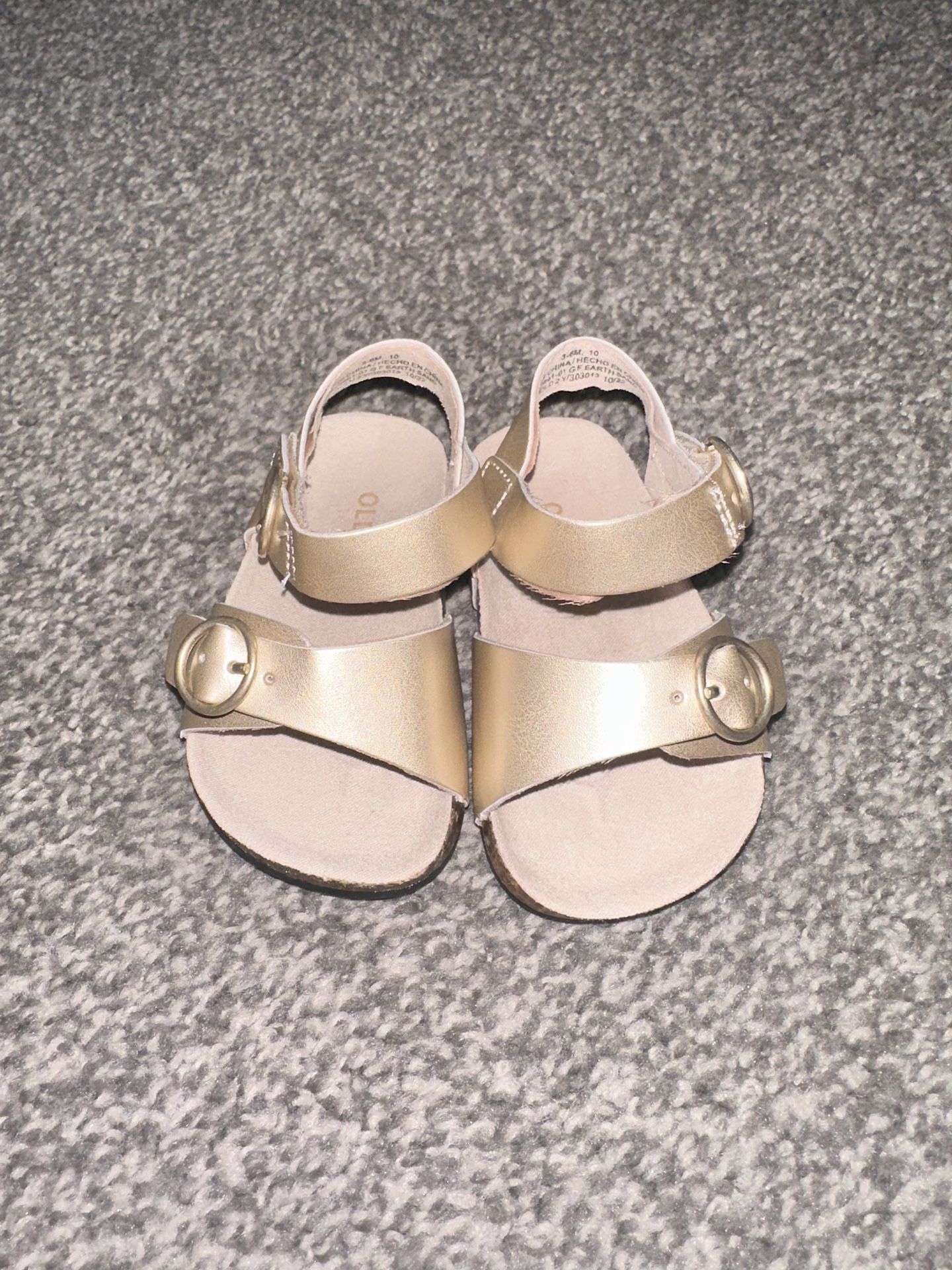 All brand new! My girl grew out of them before wearing $5 each Sizes: Gold sandals - 3-6 months White sandals - 9 - 12 months Bebe sandals - size 2 Bebe rainbow boots - size 3 Cheetah boots - 18-24 months Brown boots - 12 - 18 months Pink bunny slippers - 12-18 months