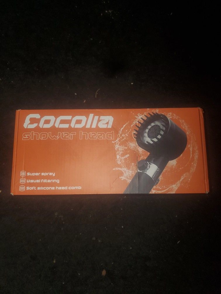 For sale is a brand new Cocolia Shower Head, still in the original box. This is a multi-function shower head designed to increase water pressure while providing a spa-like experience. Condition: New in box (Item is unused). Features: Built-in Scalp Massager: Features a soft silicone head comb perfect for massaging the scalp and scrubbing while you rinse. Visual Filtration: Includes a filter system to help remove impurities from your water (great for skin and hair health). 3 Adjustable Modes: Easy "3-speed flow regulation" to switch between spray intensities. Convenient Control: Has a "1-click open water" stop button on the handle for easy on/off control during showers. Easy Install: Standard fit that screws onto most shower hoses easily.