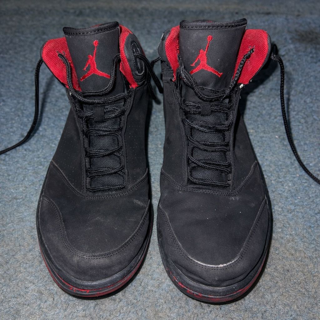 Air Jordan 1 Flight 5 shoes — men’s size 11. Red/black colorway. Used and in fair condition. Shoes show normal wear from use. Still solid for everyday wear or casual use. No major damage — priced accordingly. Local pickup only. Venmo accepted. First come, first served — no holds without payment. If this listing is up, they’re still available.