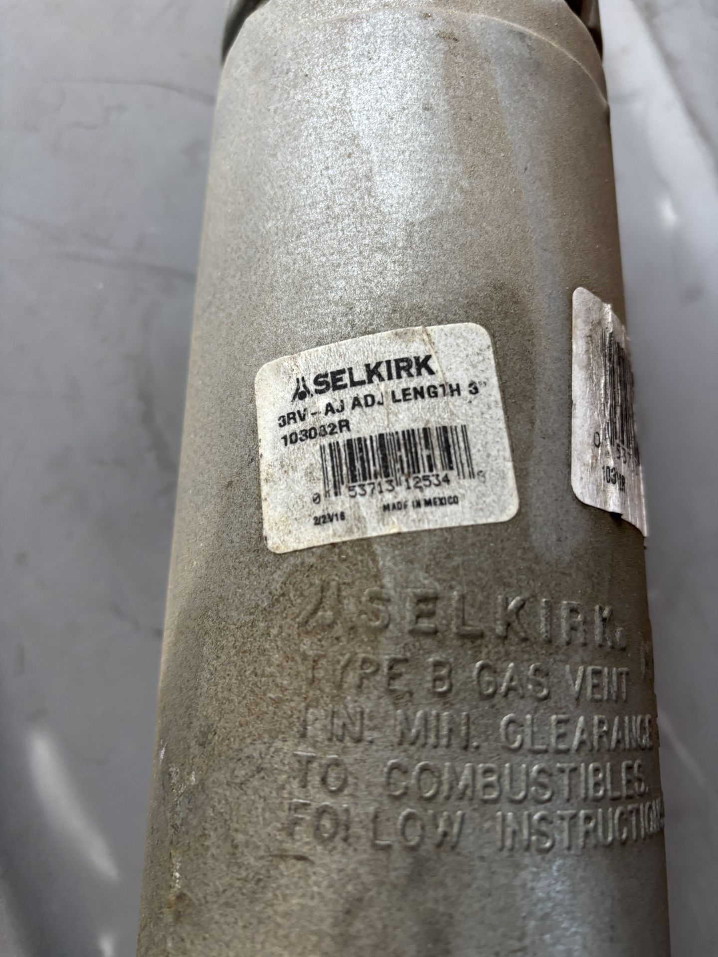 Selkirk Vent Pipe 3-in -Dia Stainless Steel B Vent Nipple Gas Water Heater Model #103082R In storage so it is a bit dusty.