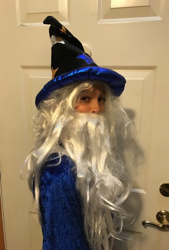 Child Wizard robe, hat, wig and beard