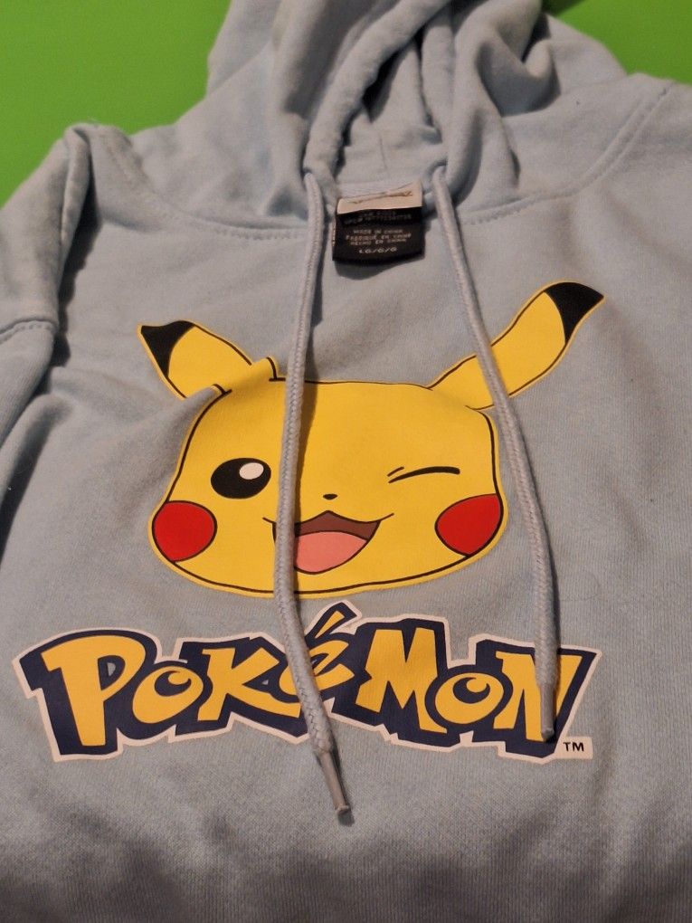 light sky blue Pikachu Pokemon hoodie size large goes for about $30 whether it's in stores or online at Walmart cash only local pickup selling mine for $20 even
