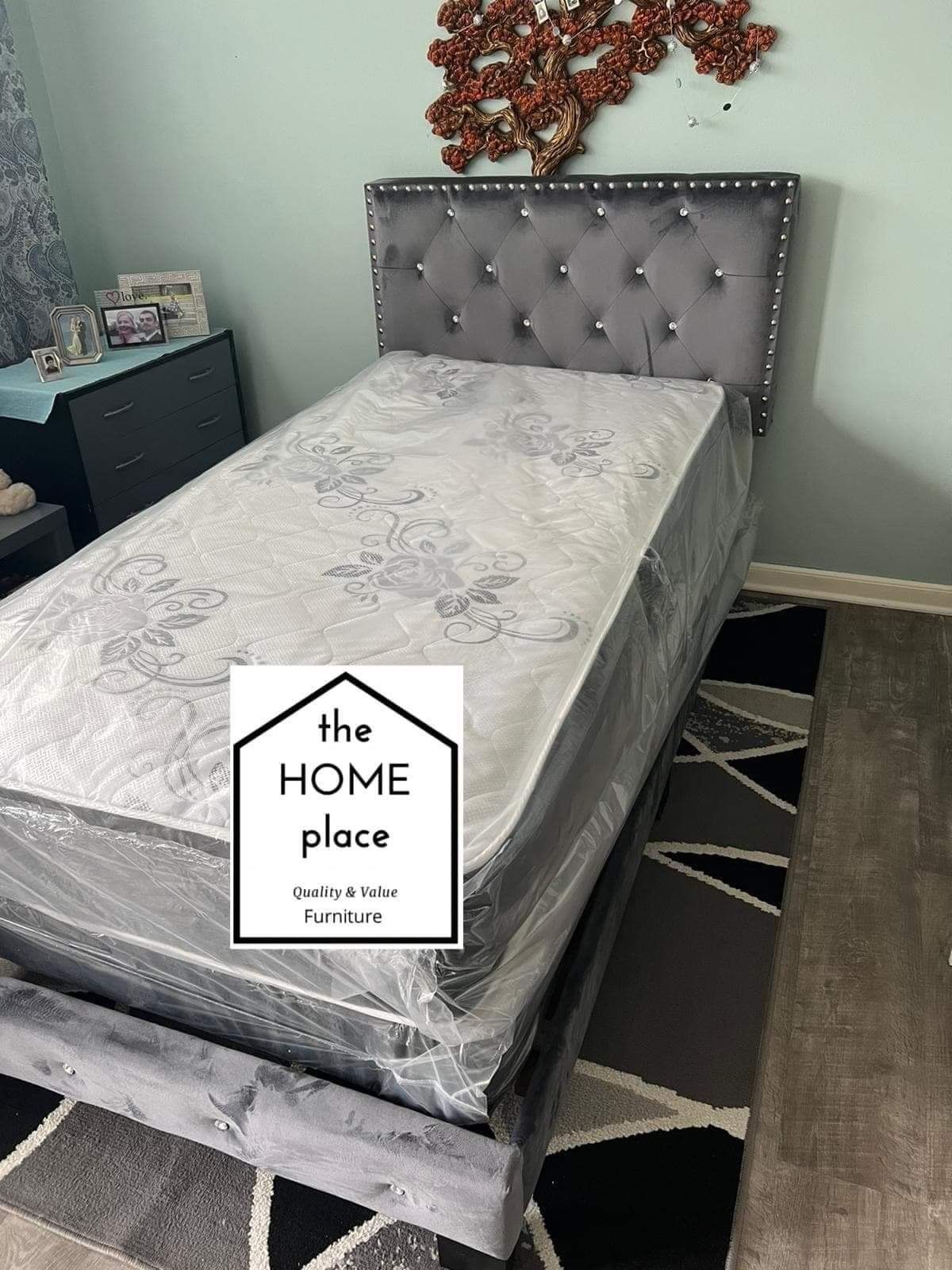 Brand New Twin Bed Frame With Mattress Set In Stock Ready For Delivery TODAY !!!💥🚚 Black, Blue And Dark Gray Color Available Now. Bed Frame With Mattress And Box Spring. Price ONLY $299!!! 🚨 Come and take it home TODAY!! 🔥🚨 Financing Available For ONLY $49 Down And Take It Home🏡 Flexible Payments 90 Days Option Same As Cash !!! 🤝 🚨 Again ONLY $49 Down && Take It Home🚨