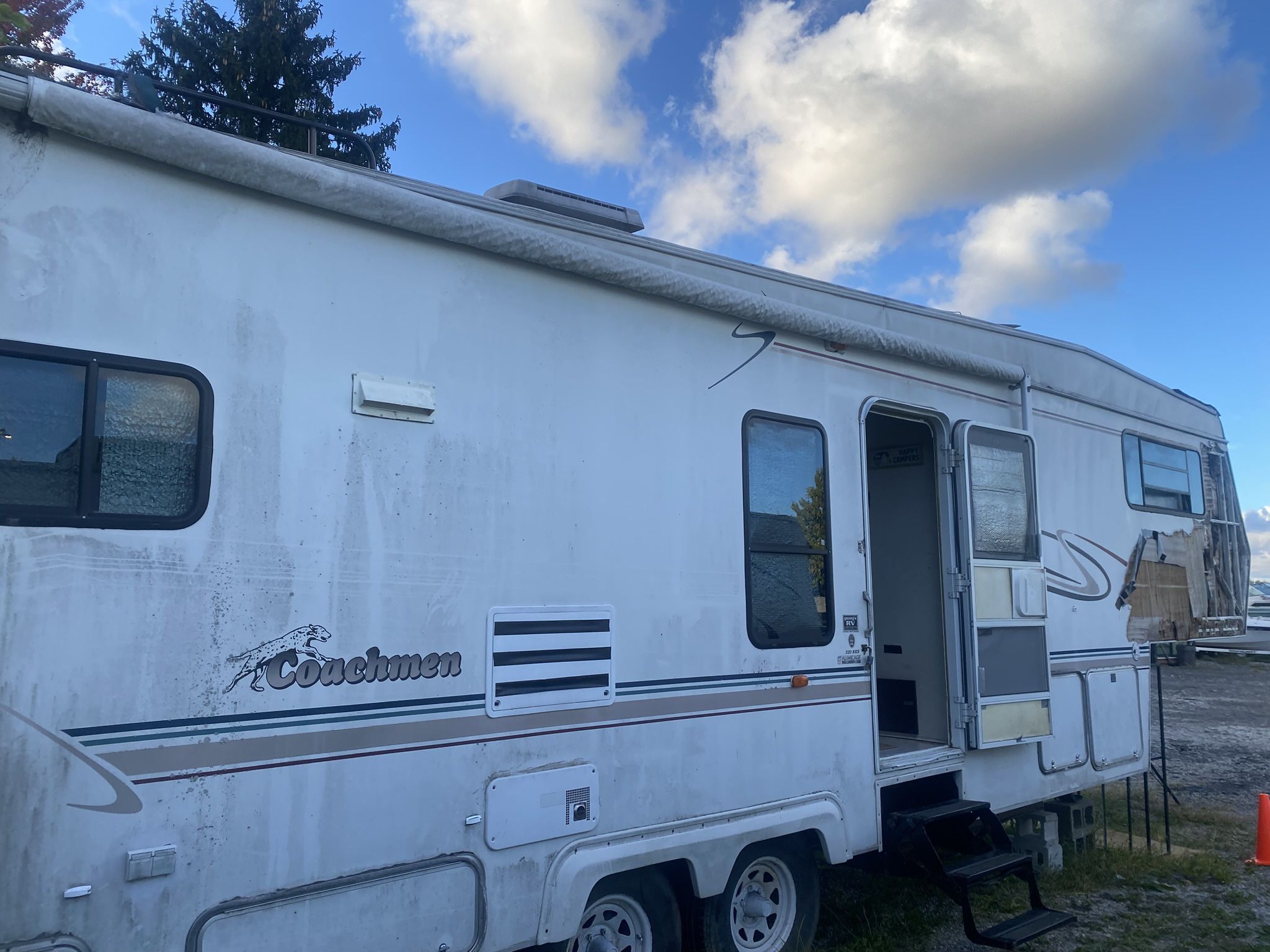 A coachman RV/Camper great deal could use some TLC the side needs repaired. It needs moved asap don’t miss out call now!! 1 bdrm kitchen bathroom with shower installed and sitting area