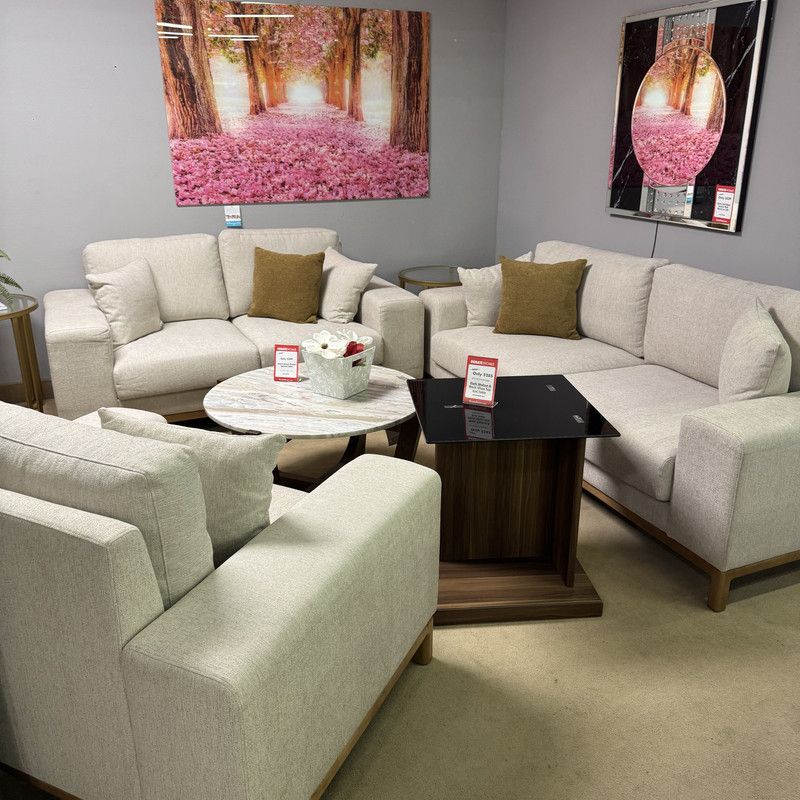 3pc Living Room Set Includes; 1 Sofa, 1 Loveseat, and 1 Chair Throw pillows included Sofa : 94 x 38 x 32 Loveseat: 74 x 38 x 32 Chair: 46 x 36 x 32 Come visit our showroom at 2235 N Tustin Ave. Santa Ana or 13000 Firestone Blvd. Santa Fe Springs or shop online at ornatehome.com Enjoy unlimited item delivery for only $79 Explore our wide range of furniture options, including dining room sets, bedroom furniture, sectionals, sofas, recliners, sleeper sofas, rugs, wall art, mattresses, bedding, kids' room furniture, office furniture, vanities, bookcases, and much more. We proudly carry brands such as Ashley Furniture, Tempur-Pedic, Sealy, and Stearns & Foster.