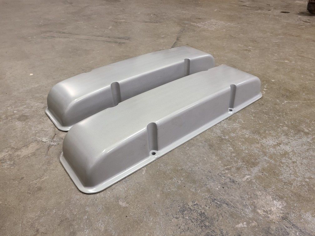 These were finned covers that were shaved and painted. Clean straight covers Staggered/Offset bolt pattern for early SBC