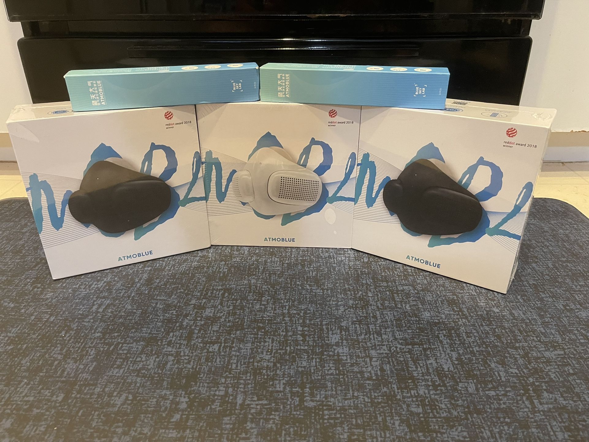 ATMOBLUE smart portable air purifier and replacement filers new unused. I have three (3) mask and two (2) boxes replacement filters. People call these mask the TESLA OF FASE MASKS 🤣 Search ATMOBLUE and learn all about it. If post is up it’s available. Mask only $45 Replacement filters (1) box (6) filters $15