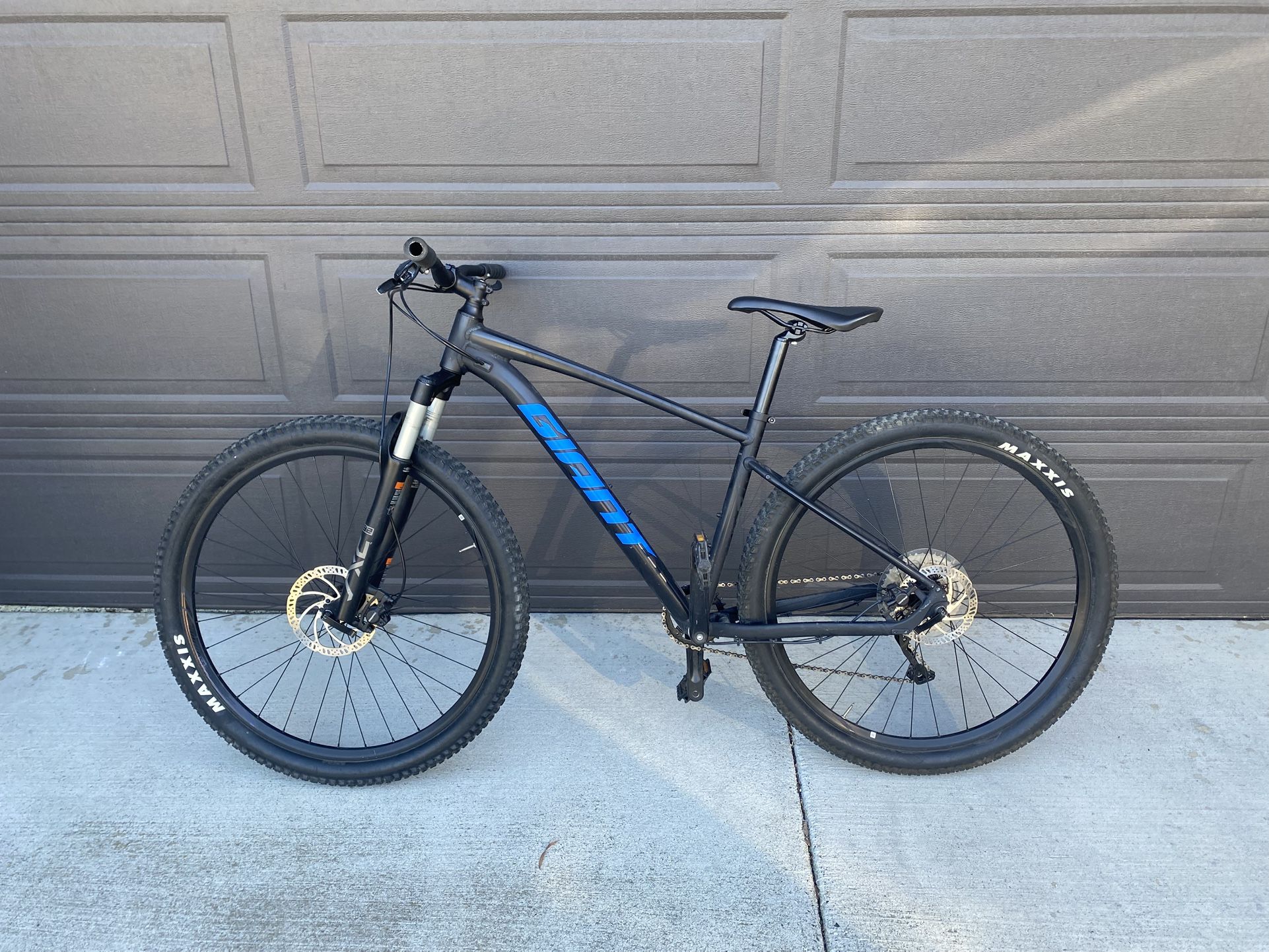 Selling my 2019 Giant Talon 1 mountain bike, size Medium. The bike is 100% stock with no aftermarket mods. It has been very lightly used for the 6 or so years I’ve had it (probably under 20 rides total) and stored indoors. The bike is in excellent mechanical condition with only light cosmetic scratches from normal use. Everything works exactly as it should. Great hard tail bike, I have another one that I’ve ridden a lot and I enjoy it. Cash or Zelle is preferred. Specs / Details: • Size: Medium • Model Year: 2019 • Wheels: 29” • Frame: Giant ALUXX aluminum • Drivetrain: Shimano (factory stock) • Brakes: Hydraulic disc brakes • Suspension: Front suspension fork • Condition: All original components