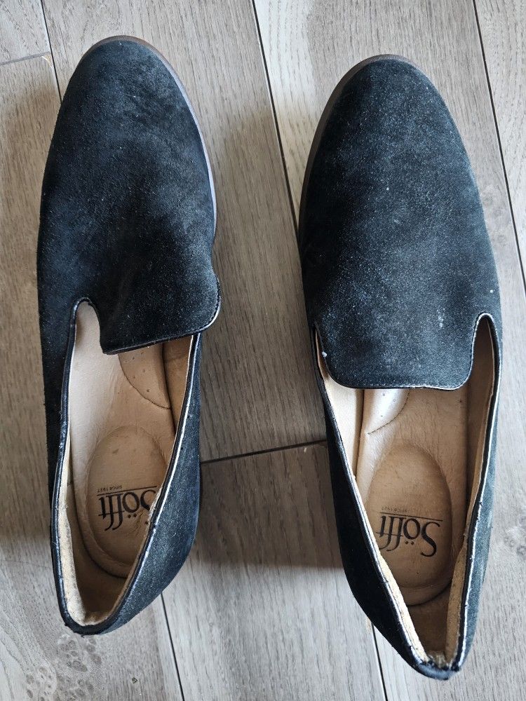 SOFFT genuine suede slip ons comfortable padded leather insoles floral cut soles Walking Shoes Loafers. Gently worn No damage. Bottoms are slightly dirty. No trying on if we meet it is for sale only