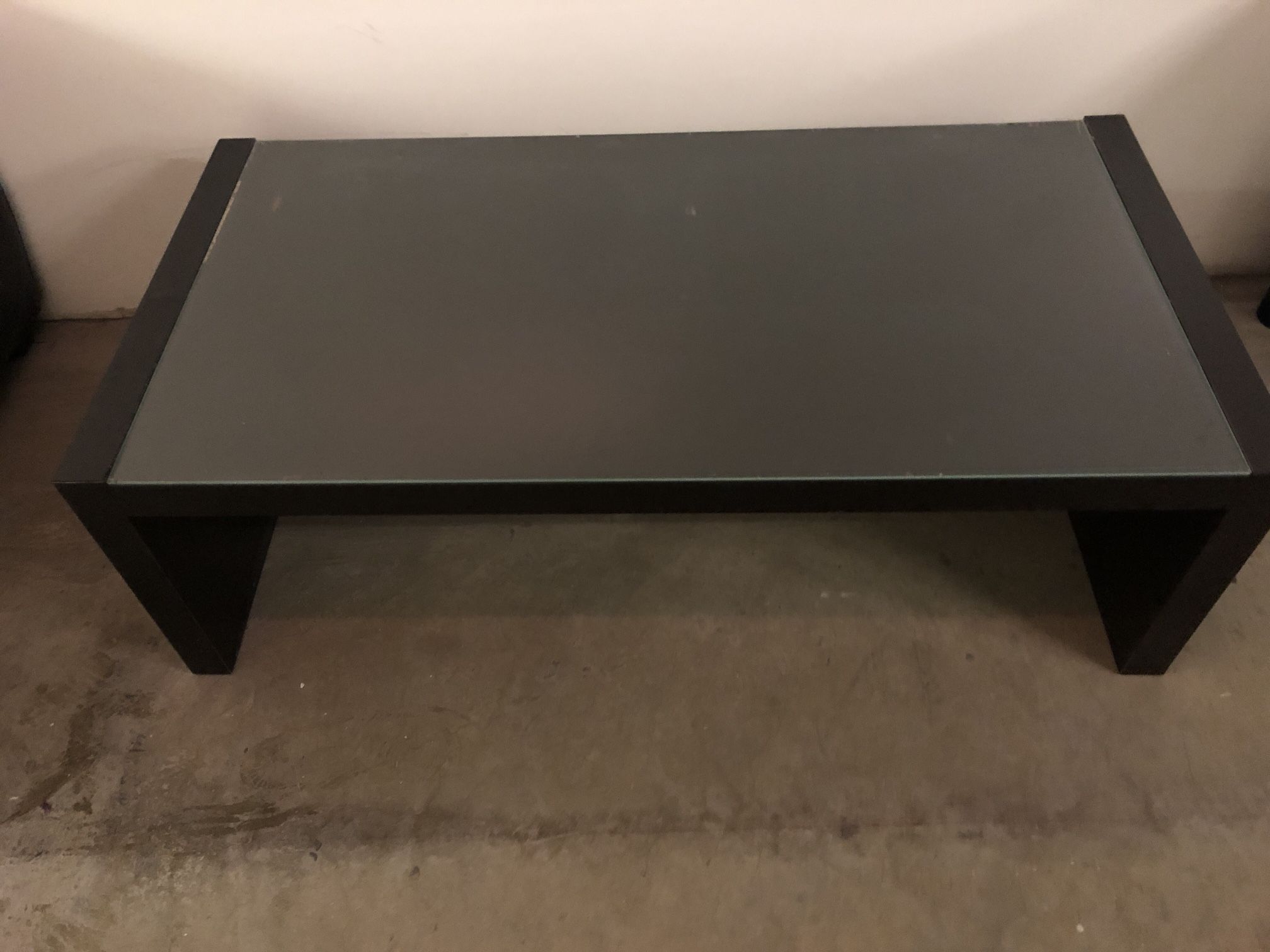 Gently used Condition: Good: Minor blemishes that most people won't notice Age: 1+ Years Old Overall Dimensions: Width: 48 inches, Height: 15 inches, Depth: 23 inches Category: Coffee Tables Material: Wood Color: Black
