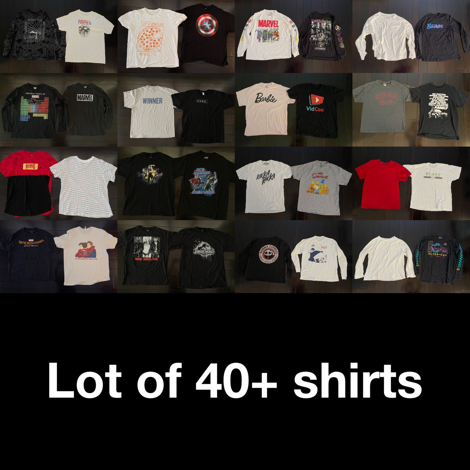 Lot of 40+ T-Shirts - Marvel short and long sleeve shirts - Size XL to L. White and Black. Marvel, Ranma 1/2 Avengers, MrBeast, VidCon, etc Some have tags or never been worn. Any questions, feel free to ask! Located in Huntington Beach