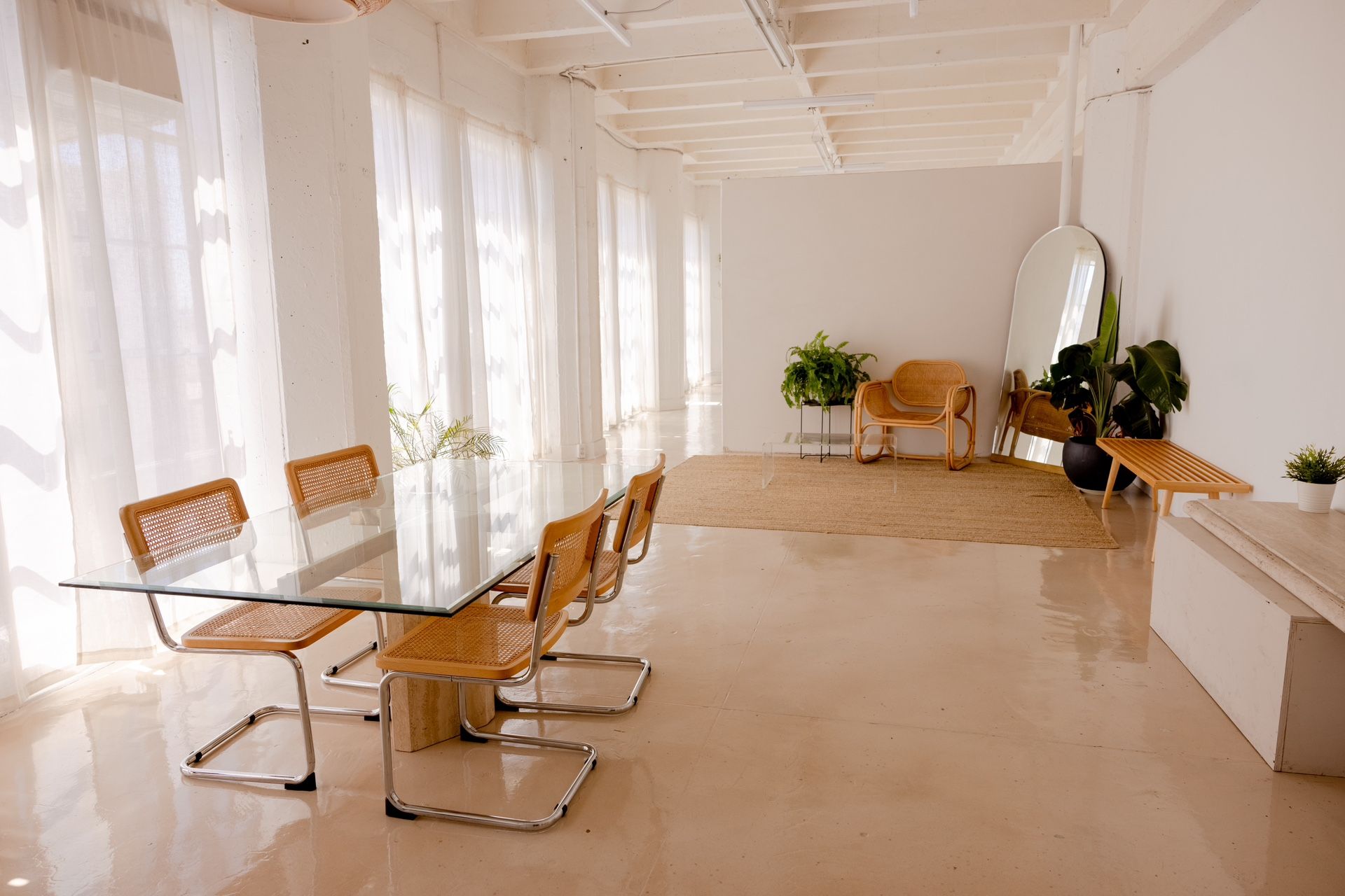 Italian Single Travertine Pedestal Glass Top Dining Conference Table