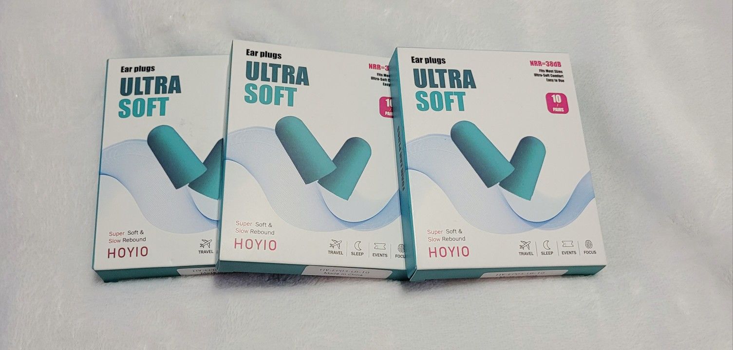 30 Foam Ear Plugs, Ultra Soft Slow Rebound 38 dB (Blue). Block out noise and enjoy peace and quiet anytime, anywhere with HOYIO Ultra Soft Ear Plugs. Designed for maximum comfort and effectiveness, these ear plugs are perfect for sleep, travel, work, concerts, and focus time. Features: π€ Super Soft & Slow Rebound Foam: Adapts gently to your ear shape for a snug, comfortable fit. π Noise Reduction Rating (NRR) 38dB: Effectively reduces loud noises to protect your hearing and improve sleep or focus. βοΈ Versatile Use: Ideal for travel, sleep, events, and study. B2