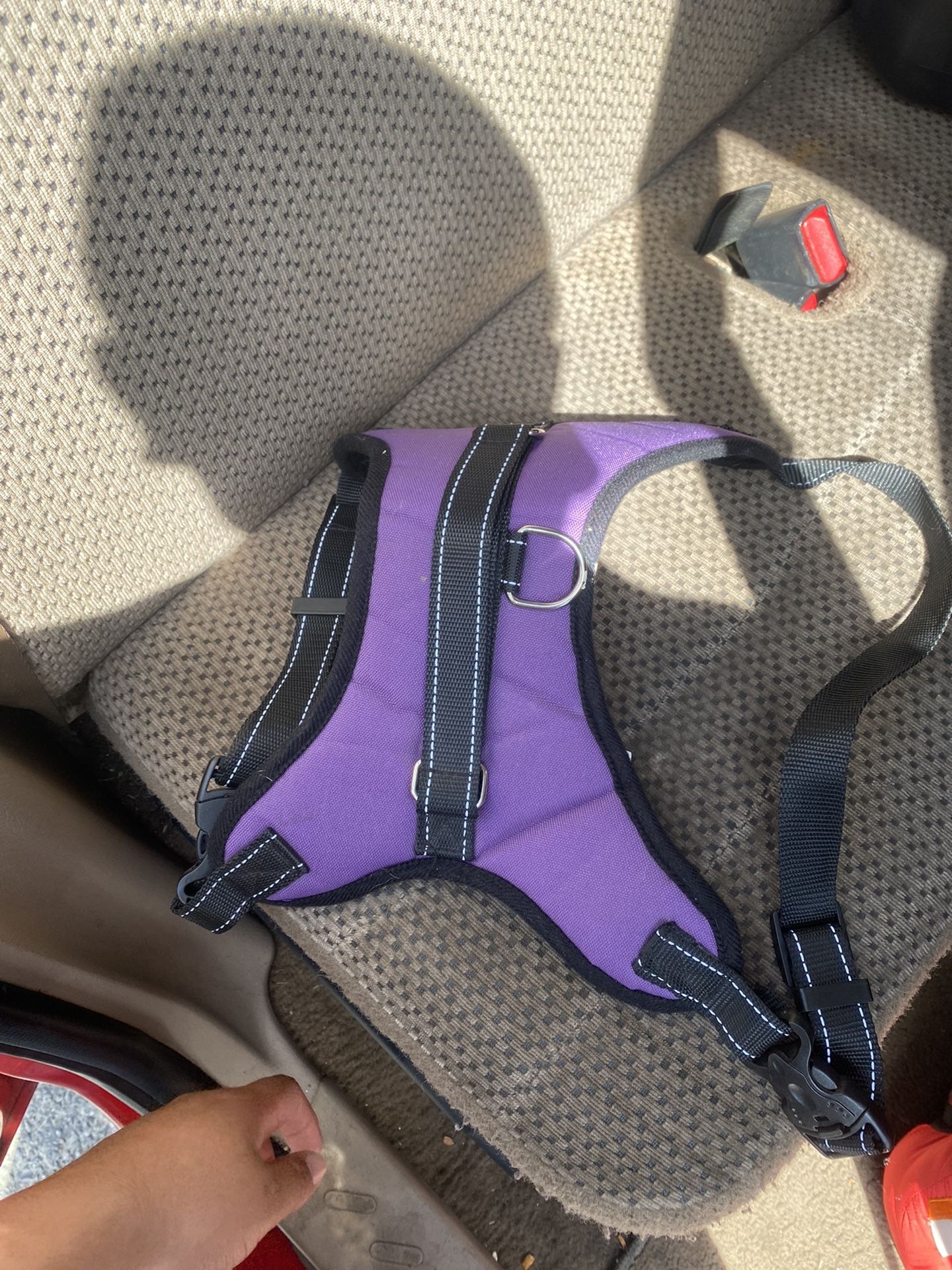 Dog harness purple color don’t need anymore. I think it’s for a large of xl it adjusts too.