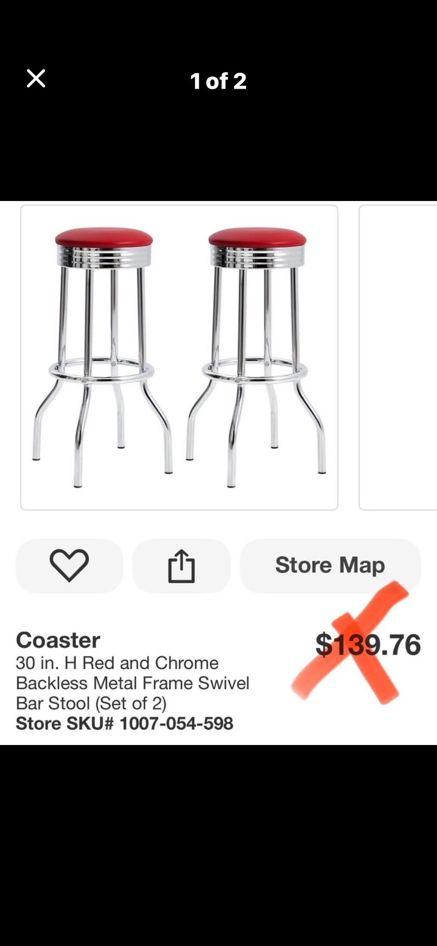 Coaster30 in. H Red and Chrome Backless Metal Frame Swivel Bar Stool (Set of 2) $70