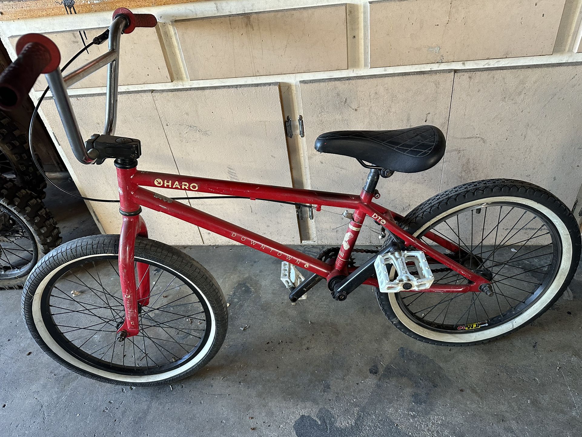 Im selling my Haro Downtown DLX its the 20.3 size ive changed the petals, grips,seat, and new white wall tires thats about it no issues just been sitting around for a while super light weight 250$