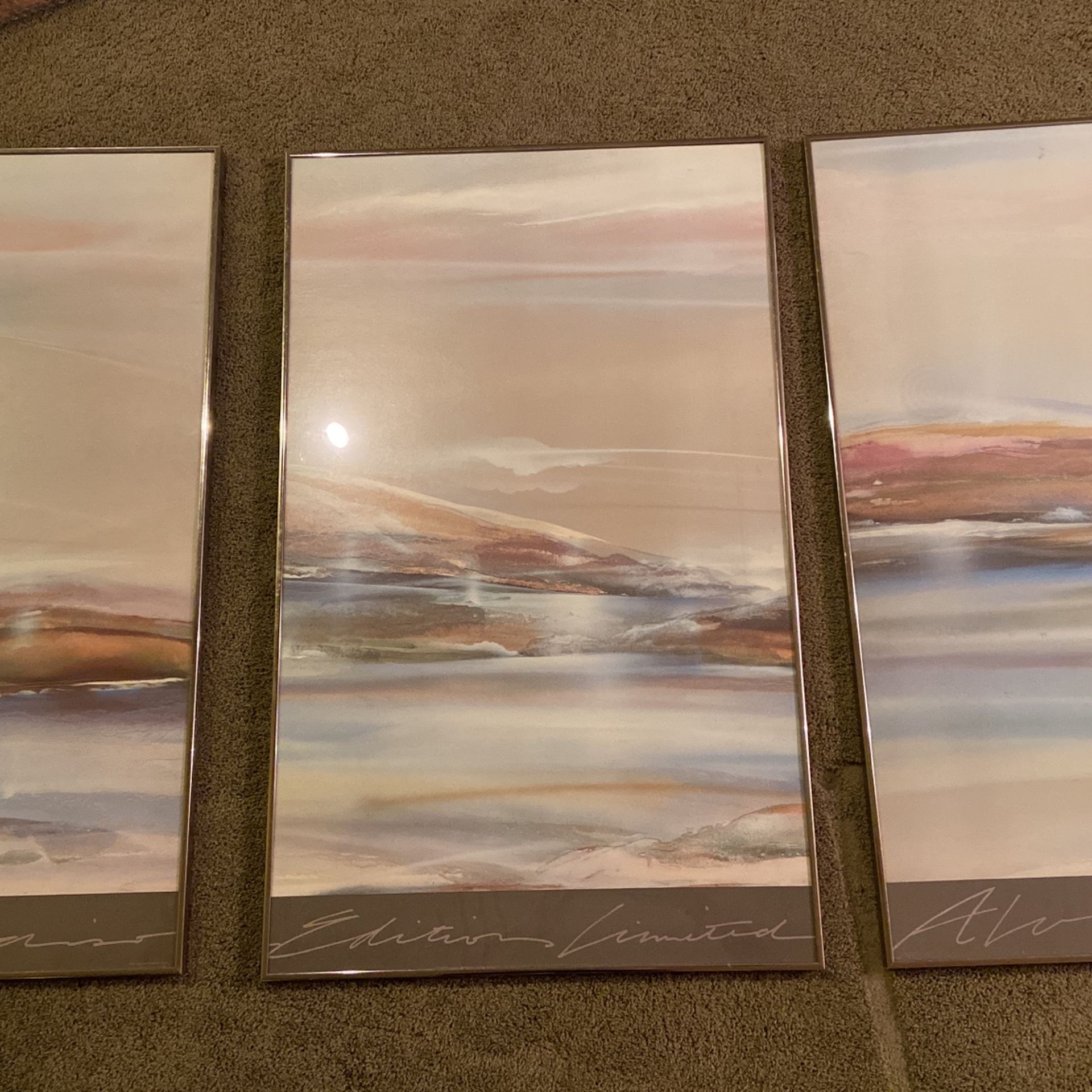 Set of 3 beach portraits. Middle one is the larger than the other two. Put together is 59inc long and 36inch tall. Box included. Metal frames