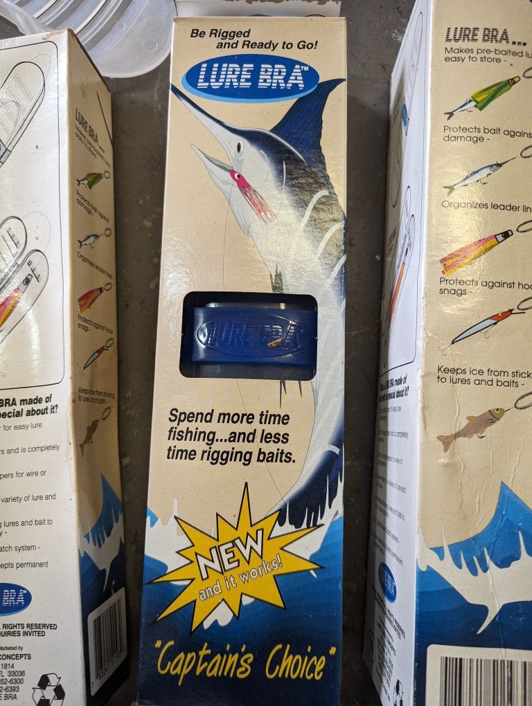 Lure Bra! Keep Rigged Trolling Lures untangled, Fresh Bait off Ice and in shape. ($5) NEW! Yozuri,-14" Octopus Skirts(4 colors), New ($6) (4) for $20. Also 7.5" Octopus Skirts, Various Brands and colors ($3) SOLD~Recharge depth Reel New ( storage) $75~SOLD. Boat Bumper - NEW, $30. SOLD