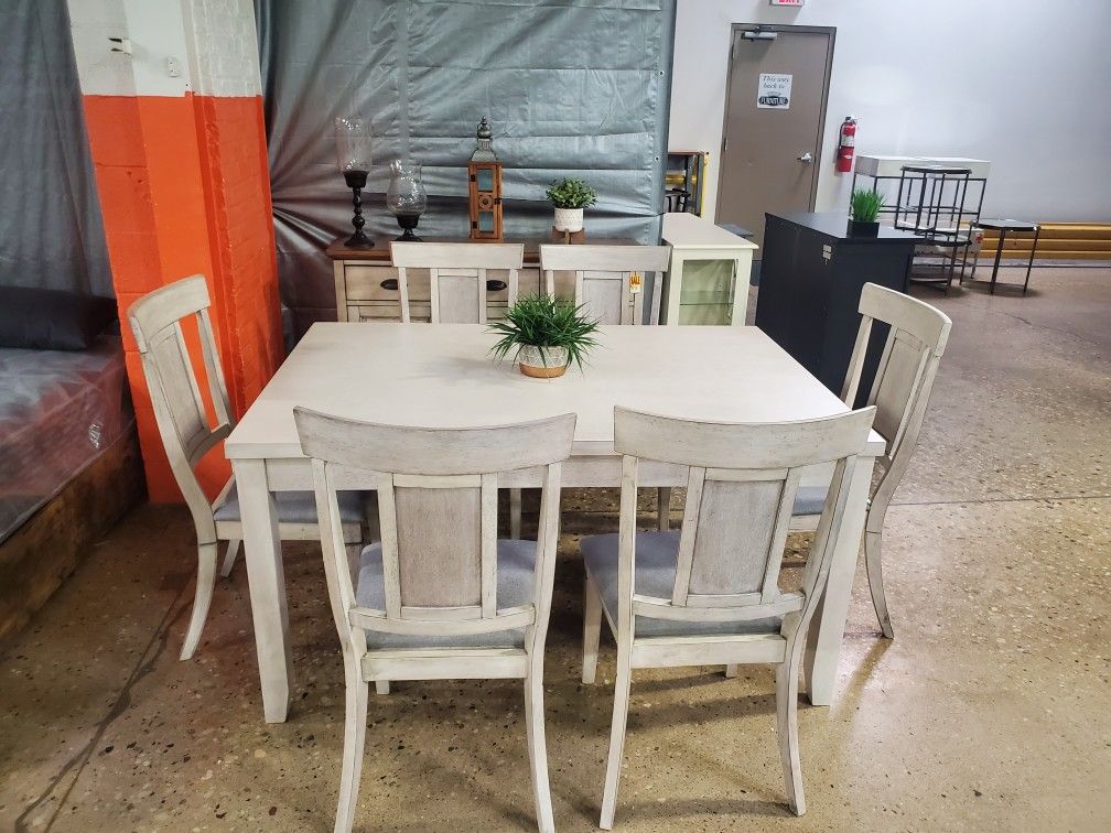 Beautiful Antique White/ Gray 7 Pc Dining Set (New)
