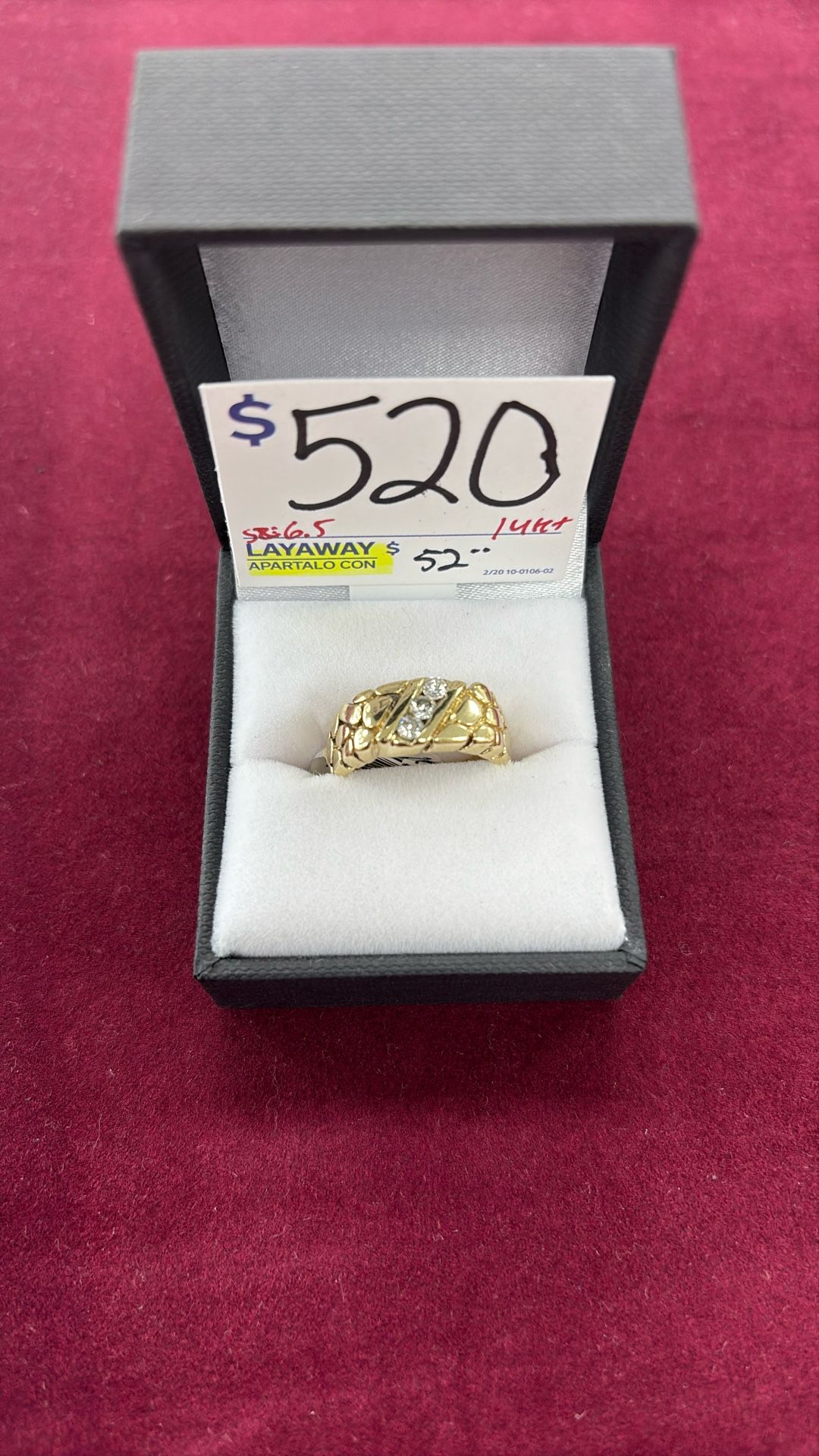 We have a beautiful men’s 14kt gold ring weighing 3.2 grams with 3 diamonds. It is a size 6.5 making it a perfect pinky ring for that special guy. Come see me at cash America 4014 e Lancaster Fort Worth, Tx 76103 today and ask for Jess. Layaway available.