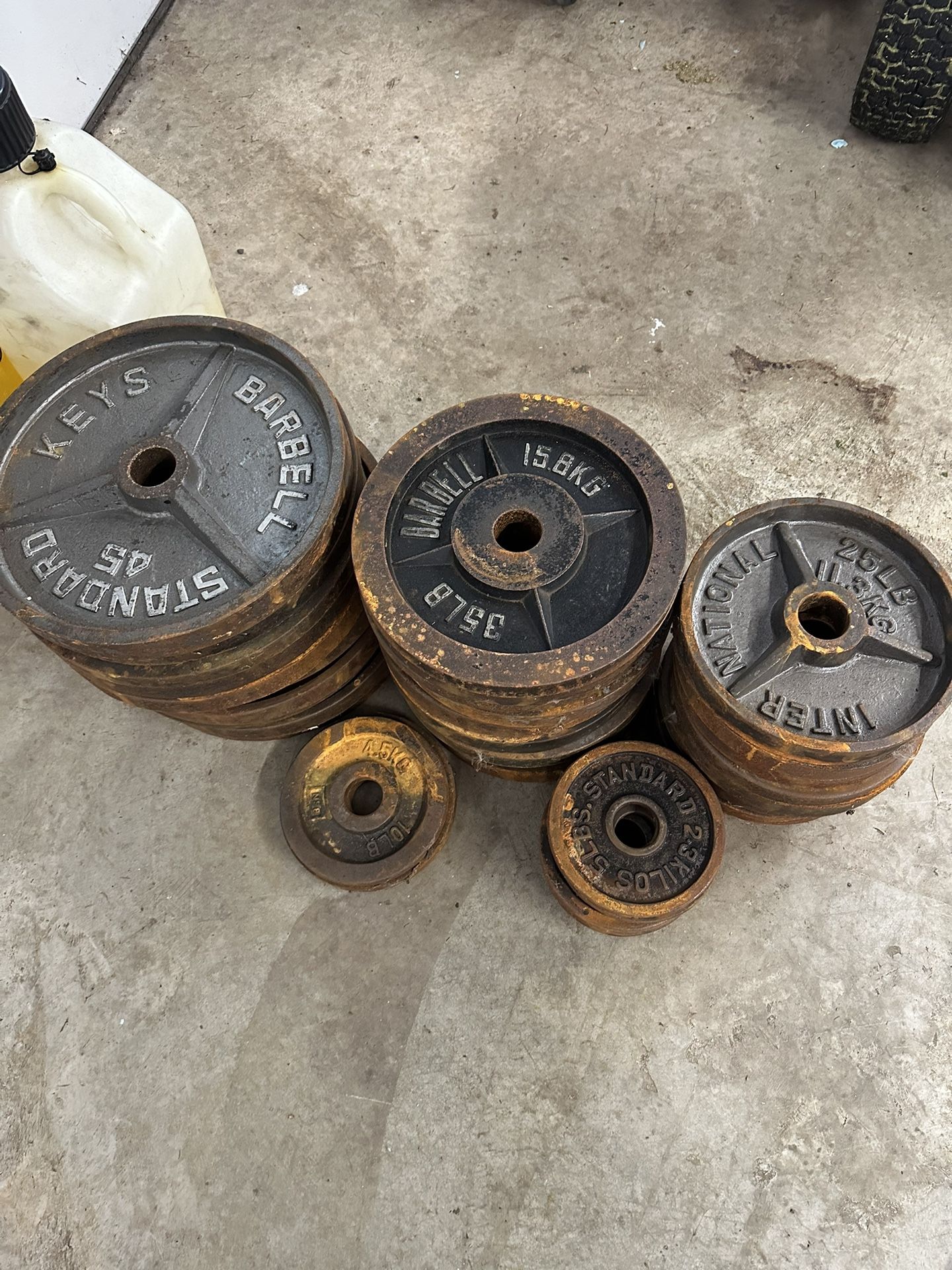 This is what I have left… 8- 35lb plates 8- 5lb plates 2- 10lb plates These were left outside for awhile and got rusted. Just need some elbow grease to clean them up or paint them to make new again. I prefer to sell the rest at once but will do some partial sales if I have to. I know these sell for over $1 per pound. Given the condition I’m open to offers and possible trades for Milwaukee tools/hunting/firearms.