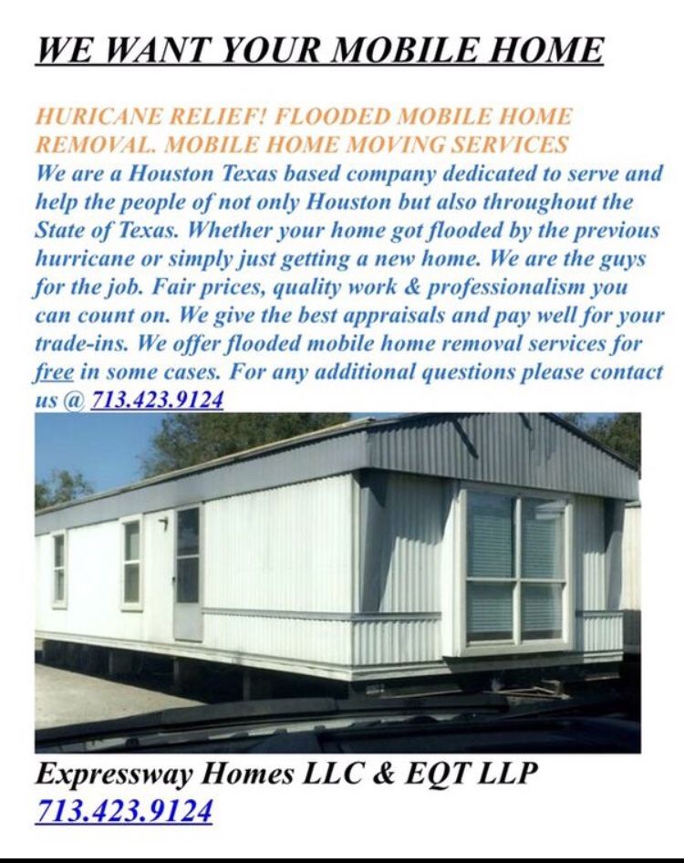 We buy mobile homes, 90’s + pay top dollar and great appraisal services. We offer mobile home services as well: moving, leveling, tie downs. Ect.