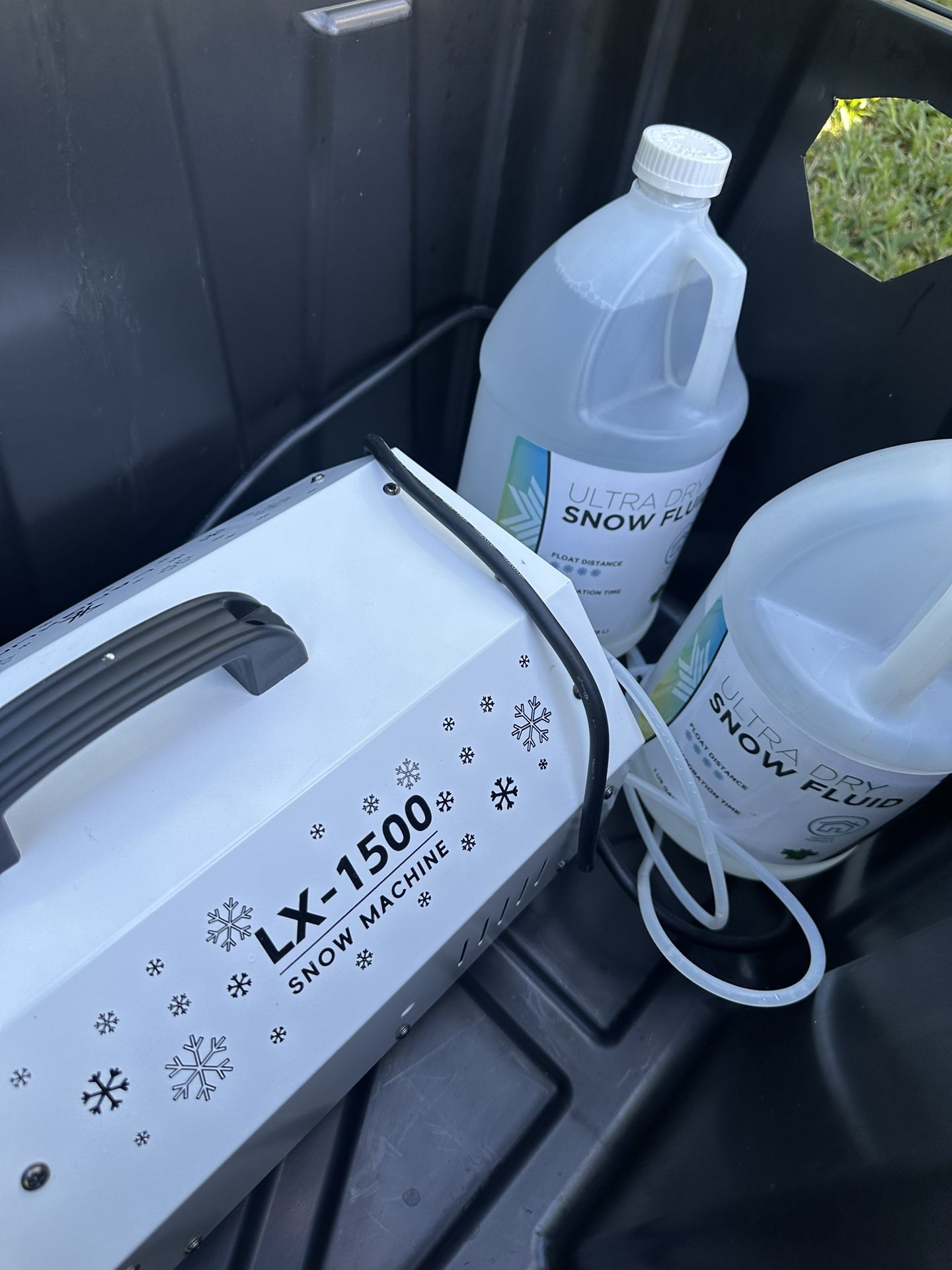 Langxun snow machine 1500. Used it for one party. Works amazing with remote controller and two gallons of liquid